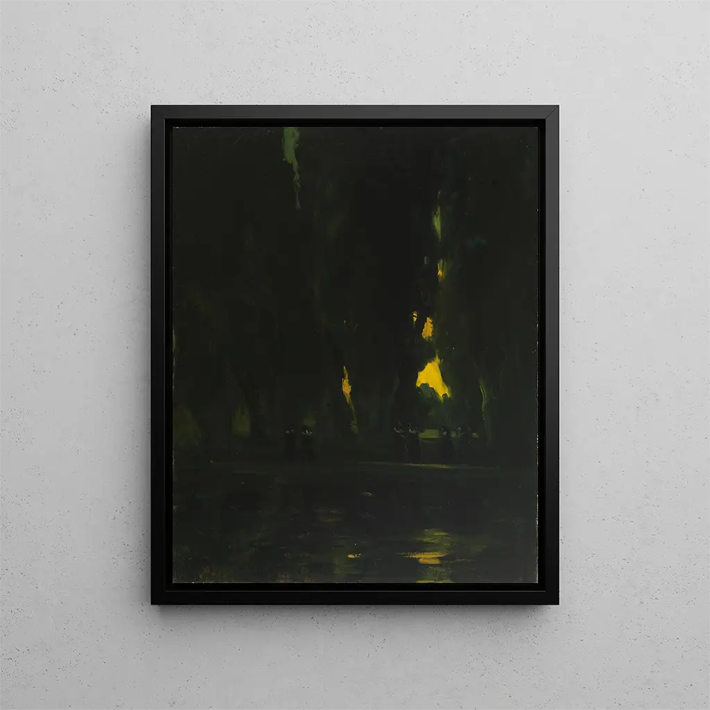 Reproduction Villa Falconieri - Charles Walter Stetson – Introduction captivante Nichée au cœur de la tradition artistique du début du XXe siècle, l'œuvre "Villa Falconieri" de Charles Walter Stetson se dresse comme un témoignage vibrant de l'harmonie entre l'architecture et la nature. Cette représentation, à la fois délicate et majestueuse, invite le spectateur à plonger dans un univers où le temps semble suspendu. La villa, emblématique du paysage romain, s'impose comme un symbole de l'élégance italienne, tandis que le talent de Stetson magnifie chaque détail de cette demeure historique. La lumière qui caresse les murs et les jardins luxuriants évoque une atmosphère de sérénité, transportant l'observateur vers une époque où l'art et la vie quotidienne s'entremêlaient avec grâce. Style et singularité de l’œuvre Le style de Stetson dans "Villa Falconieri" se distingue par son approche impressionniste, caractérisée par des coups de pinceau vibrants et une palette de couleurs soigneusement choisie. Chaque nuance, chaque ombre, contribue à créer une ambiance poétique, où la réalité se mêle à la rêverie. La composition de l'œuvre, équilibrée et harmonieuse, révèle une attention minutieuse aux détails architecturaux, tout en célébrant la beauté naturelle environnante. Les arbres majestueux, les fleurs éclatantes et le ciel azur se conjuguent pour former un tableau vivant, où la villa devient le point focal d'une scène idyllique. Cette fusion entre l'architecture et la nature est une signature de Stetson, qui parvient à capturer l'essence même de l'harmonie. L’artiste et son influence Charles Walter Stetson, artiste américain d'origine, a su s'imprégner des influences européennes, notamment lors de ses séjours en Italie. Sa formation artistique et son amour pour la lumière et les paysages ont façonné son style unique. Stetson a été un pionnier dans l'exploration de la lumière et de l'atmosphère, cherchant à transmettre des émotions à travers ses œuvres. Son travail sur "Villa Falconieri" illustre parfaitement cette quête, où chaque coup de pinceau semble respirer la vie. En intégrant des éléments de l'impressionnisme et du post-impressionnisme, Stetson a su créer un langage visuel qui lui est propre, influençant ainsi de nombreux artistes