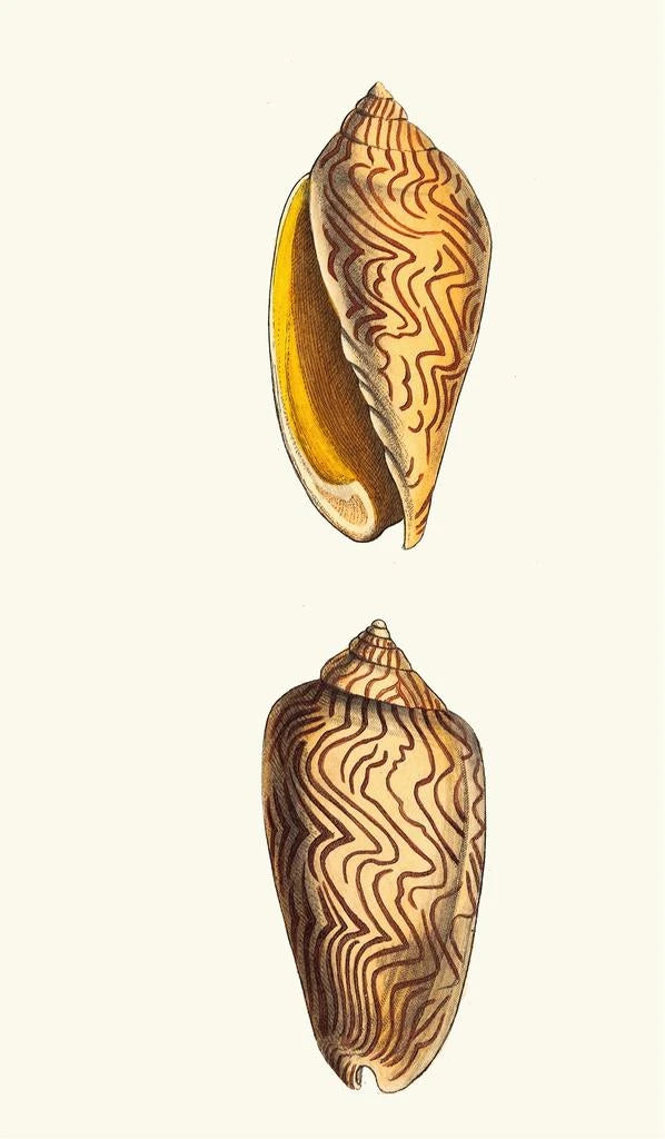 La reproduction de Volute ondulée, également créée par George Shaw, révèle la beauté organique d'un coquillage fascinant. Cette œuvre se distingue par ses courbes élégantes et ses motifs délicats, évoquant le mouvement fluide des vagues. Les teintes douces de crème et de rose se marient harmonieusement, créant une atmosphère chaleureuse et accueillante. Shaw, avec son œil artistique, parvient à transmettre la légèreté et la grâce de cet élément naturel, invitant le spectateur à s'immerger dans la beauté de la mer.