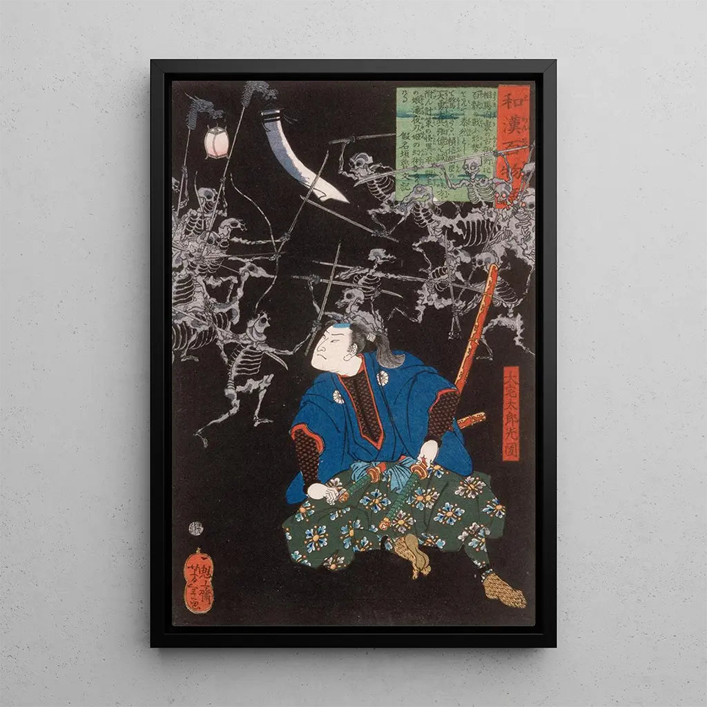 ya Tar Mitsukune observant des squelettes : une vision troublante de l'au-delà La reproduction "ya Tar Mitsukune observant des squelettes" de Tsukioka Yoshitoshi offre une plongée fascinante dans le monde des esprits et des mystères. Cette œuvre, riche en symbolisme, présente Mitsukune, un personnage emblématique, face à des squelettes, évoquant des thèmes de mort et de résurrection. Les couleurs sombres et les détails saisissants des squelettes contrastent avec la présence presque lumineuse de Mitsukune, créant une atmosphère à la fois inquiétante et captivante. La technique de l'estampe permet de rendre cette scène avec une intensité visuelle qui attire l'œil et stimule l'imagination. Tsukioka Yoshitoshi : un innovateur de l'estampe ukiyo-e Tsukioka Yoshitoshi, né en 1839, est reconnu comme l'un des derniers grands maîtres de l'estampe ukiyo-e, un art traditionnel japonais. Sa carrière a été marquée par des influences variées, allant des traditions anciennes aux nouvelles formes d'art qui émergeaient à son époque. "ya Tar Mitsukune observant des squelettes" illustre son talent pour fusionner des éléments folkloriques avec des techniques modernes, créant des œuvres qui parlent à la fois aux amateurs d'art traditionnels et contemporains. Yoshitoshi a su capturer l'essence des récits populaires tout en y ajoutant sa propre vision unique. Une acquisition décorative aux multiples atouts Cette reproduction du tableau "ya Tar Mitsukune observant des squelettes" est un choix décoratif audacieux pour tout espace. Que vous souhaitiez l'afficher dans un salon, un bureau ou une chambre, cette toile apporte une dimension intrigante à votre décoration intérieure. Sa qualité d'impression assure une fidélité remarquable aux détails de l'œuvre originale, rendant hommage à l'art de Yoshitoshi. Avec son esthétique captivante, cette reproduction devient un élément de conversation, suscitant l'intérêt et l'admiration de vos visiteurs.
