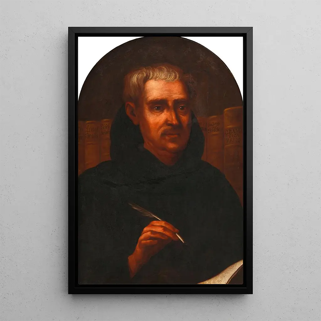 De kunstdruk van Abraham a Santa Clara, prediker en schrijver, roept een sfeer op die doordrenkt is van sereniteit en spiritualiteit. De warme, aardse kleuren, gemengd met lichte accenten, creëren een opvallend contrast dat de aandacht trekt. De compositie, gericht op de figuur van Abraham, nodigt uit tot contemplatie en reflectie. De minutieuze details van zijn kleding en de sereen uitdrukking op zijn gezicht getuigen van een technische meesterschap dat verder gaat dan een eenvoudig portret. Dit kunstwerk, zowel intiem als universeel, dompelt ons onder in een moment van devotie, waarin elk element geladen lijkt met betekenis.