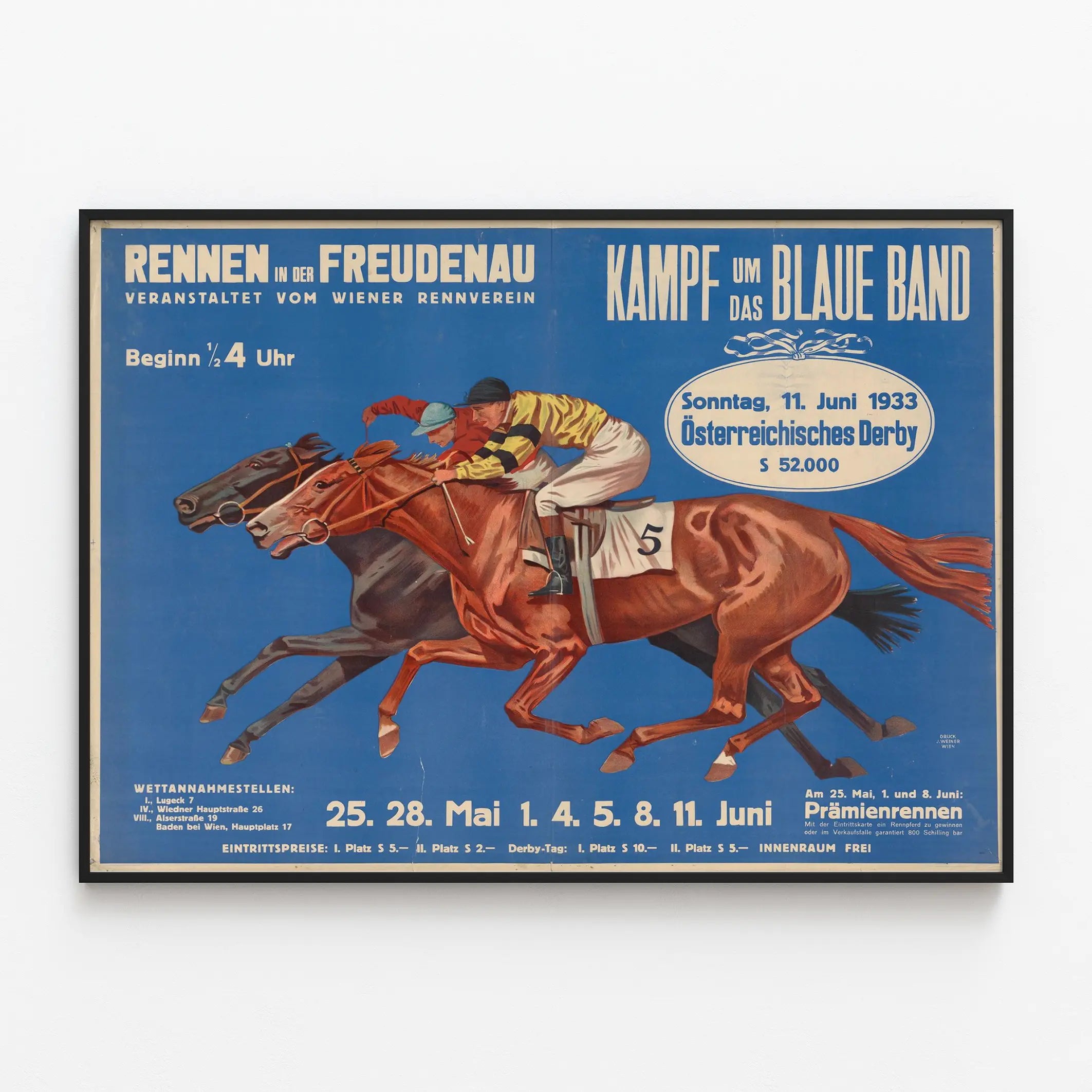 Affiche Vintage Course Hippique Rennen in der Freudenau 1933
