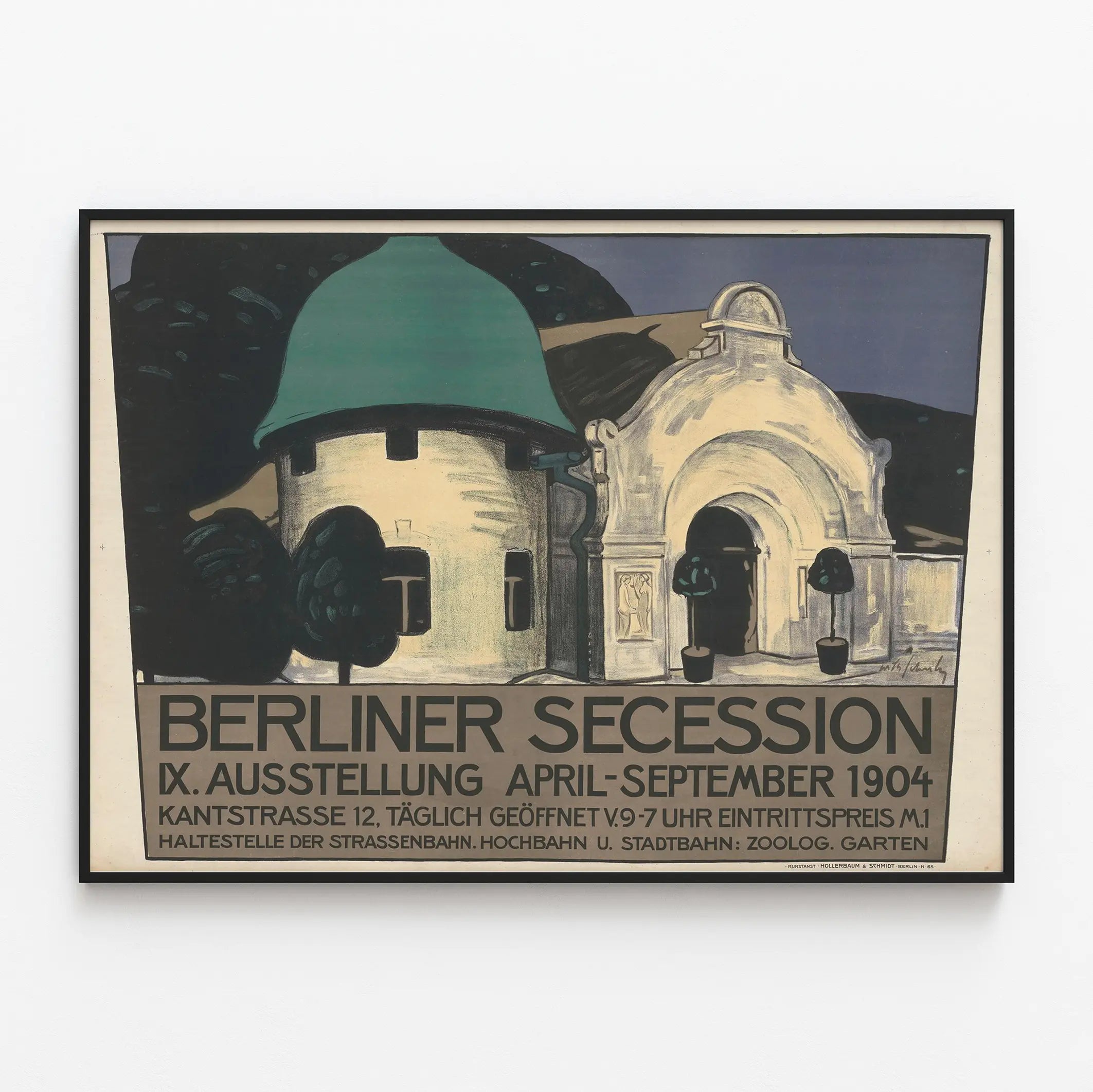 Cette affiche vintage est une pièce emblématique idéale pour une décoration murale raffinée et artistique. Elle annonce la neuvième exposition de la Berliner Secession, qui s'est tenue entre avril et septembre 1904 à Berlin, rue Kantstrasse 12. Le design graphique met en avant une bâtisse aux formes arrondies avec un toit vert et une entrée voûtée illuminée, entourée d'arbres stylisés, dans une palette sobre de beiges, verts et bleus nocturnes. Ce poster fait revivre l'ambiance du début du XXe siècle, époque d'effervescence artistique marquée par la Sécession berlinoise, un mouvement d'artistes modernistes. Ce tableau graphique saura enrichir un intérieur contemporain ou classique en y apportant une touche d'histoire de l'art et un style vintage unique. Parfait pour accrocher au mur d’un salon, bureau ou espace culturel, ce poster décoratif invite à la découverte artistique et au voyage dans le temps. Les dimensions généreuses de l'affiche en font un élément de décoration murale impactant, à associer avec des cadres sobres pour valoriser son charme rétro. Ce visuel original s'adresse aux amateurs de décoration murale authentique, d'affiches d'époque et d'art graphique historique.