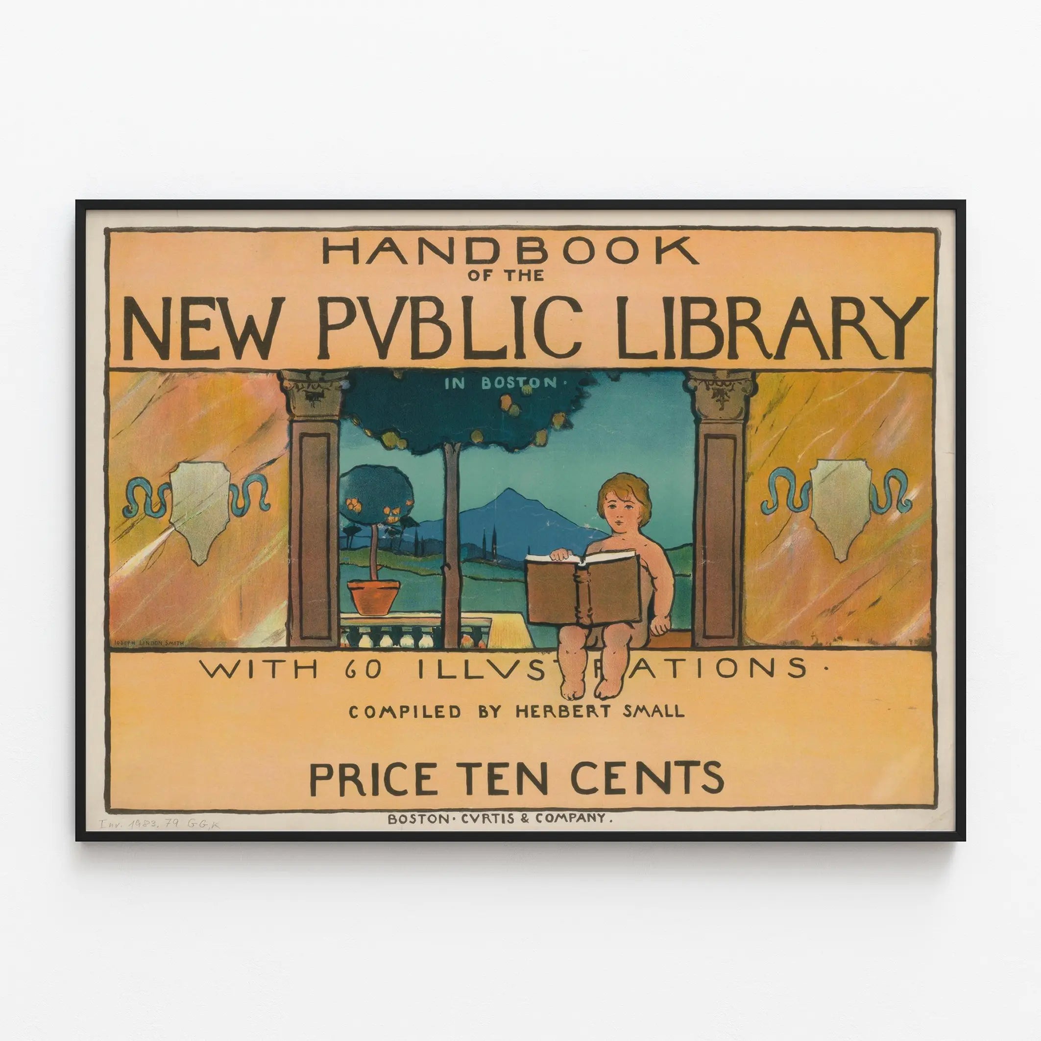 Découvrez cette affiche vintage représentant la couverture du "Handbook of the New Public Library in Boston", une illustration artistique et colorée idéale pour la décoration murale. Ce poster met en avant une scène stylisée où un enfant est assis, tenant un grand livre, symbolisant l'accès au savoir et à la culture que représente une bibliothèque. Le décor est encadré par une architecture classique évoquant une terrasse avec colonnes, et un paysage apaisant en arrière-plan, soulignant l'atmosphère tranquille et inspirante d'une bibliothèque. Le texte en lettres majuscules met en évidence le titre du guide et la promesse de 60 illustrations, renforçant l'aspect historique et informatif de cette œuvre. Cette décoration murale vintage est parfaite pour les passionnés de lecture, d'histoire des bibliothèques ou pour tout espace désireux d'ajouter une touche intellectuelle et artistique. Facile à intégrer dans un salon, bureau ou une bibliothèque personnelle, ce poster offre un style rétro-chic avec un graphisme simple mais évocateur. Apportez une dimension culturelle et nostalgique à votre intérieur avec cette affiche inspirante.
