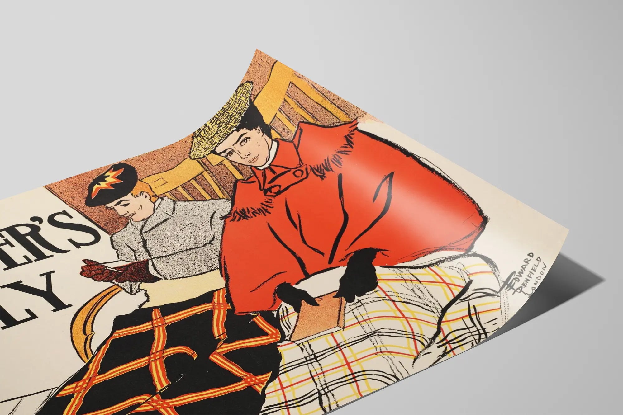 Découvrez cette affiche vintage Harper's July, une œuvre graphique pleine de charme et de caractère signée Edward Denfield. Cette illustration d'époque met en scène deux personnages féminins élégamment vêtus, assis sur des fauteuils en bois, vêtus de manteaux colorés et recouverts de couvertures à motifs tartan, symbole d'une mode ancienne et raffinée. L'image se distingue par son style vintage unique et ses couleurs chaudes, mêlant des tons orangés, noirs et beige, qui apporteront une touche d'authenticité et de nostalgie à toute décoration murale. Cette affiche Harper's July est parfaite pour les amateurs d'art graphique et de décoration rétro, souhaitant ajouter une atmosphère délicatement élégante à leur intérieur. Le style typographique noir et imposant de l'inscription « Harper's July » équilibre l'ensemble, accentuant la présence visuelle du poster. Que ce soit pour un salon, un bureau ou une salle de lecture, ce poster classiciste est un choix idéal pour égayer vos murs avec un objet d'art distinctif. Sa composition équilibrée et son graphisme stylisé en font également un cadeau original pour les passionnés de décoration murale vintage. Attirez l'œil et enrichissez votre espace de vie avec cette affiche Harper's July, un hommage raffiné à l'illustration britannique du début du XXe siècle.