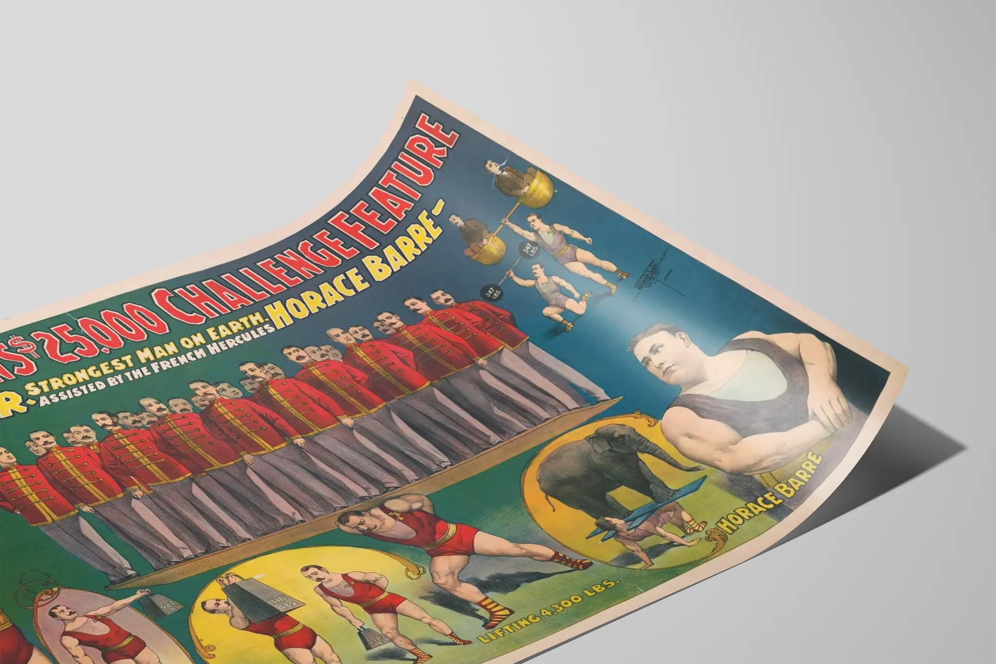 Affiche vintage John Robinson's Challenge avec Louis Cyr et Horace Barre