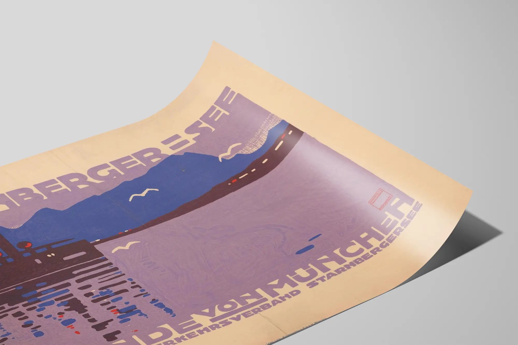 Cette affiche décorative vintage présente une vue stylisée du lac de Starnberg, situé à une demi-heure de Munich, et constitue un choix parfait pour ceux qui souhaitent enrichir leur décoration murale avec une touche rétro et artistique. Le design met en avant des formes minimalistes et des couleurs dominantes de violet et bleu, évoquant la silhouette du lac et des montagnes à l'horizon, ainsi que des oiseaux en vol, apportant une atmosphère paisible et naturelle. La composition graphique inclut des éléments géométriques et une typographie forte, caractéristiques des affiches anciennes de voyage, qui attirent le regard tout en invitant à l’évasion. Un bateau navigue doucement sur l'eau, reflétant l'importance du lac non seulement comme site naturel mais aussi comme destination touristique accessible depuis Munich, ville proche de ce lieu emblématique. Cette affiche peut se décliner en poster ou en tableau mural, s'intégrant harmonieusement dans différents styles de décoration d’intérieur, que ce soit dans un salon, une chambre ou un bureau, pour évoquer subtilement le charme des paysages alpins et la beauté des sites naturels allemands. Elle s’adresse aux amateurs d’art graphique vintage, aux passionnés de décoration murale thématique sur la nature ou aux collectionneurs d’affiches touristiques. La simplicité de son graphisme associée à une palette de couleurs apaisantes favorise une ambiance chaleureuse et inspirante dans votre espace. Ce poster peut également compléter une collection d’affiches de voyages ou de paysages emblématiques d’Europe, en apportant une dimension historique et culturelle à votre décoration. Enfin, grâce à son style unique, cette affiche vintage du lac de Starnberg sera à la fois un objet décoratif et un point de conversation intéressant, invitant vos visiteurs à découvrir cette région pittoresque à proximité de Munich.