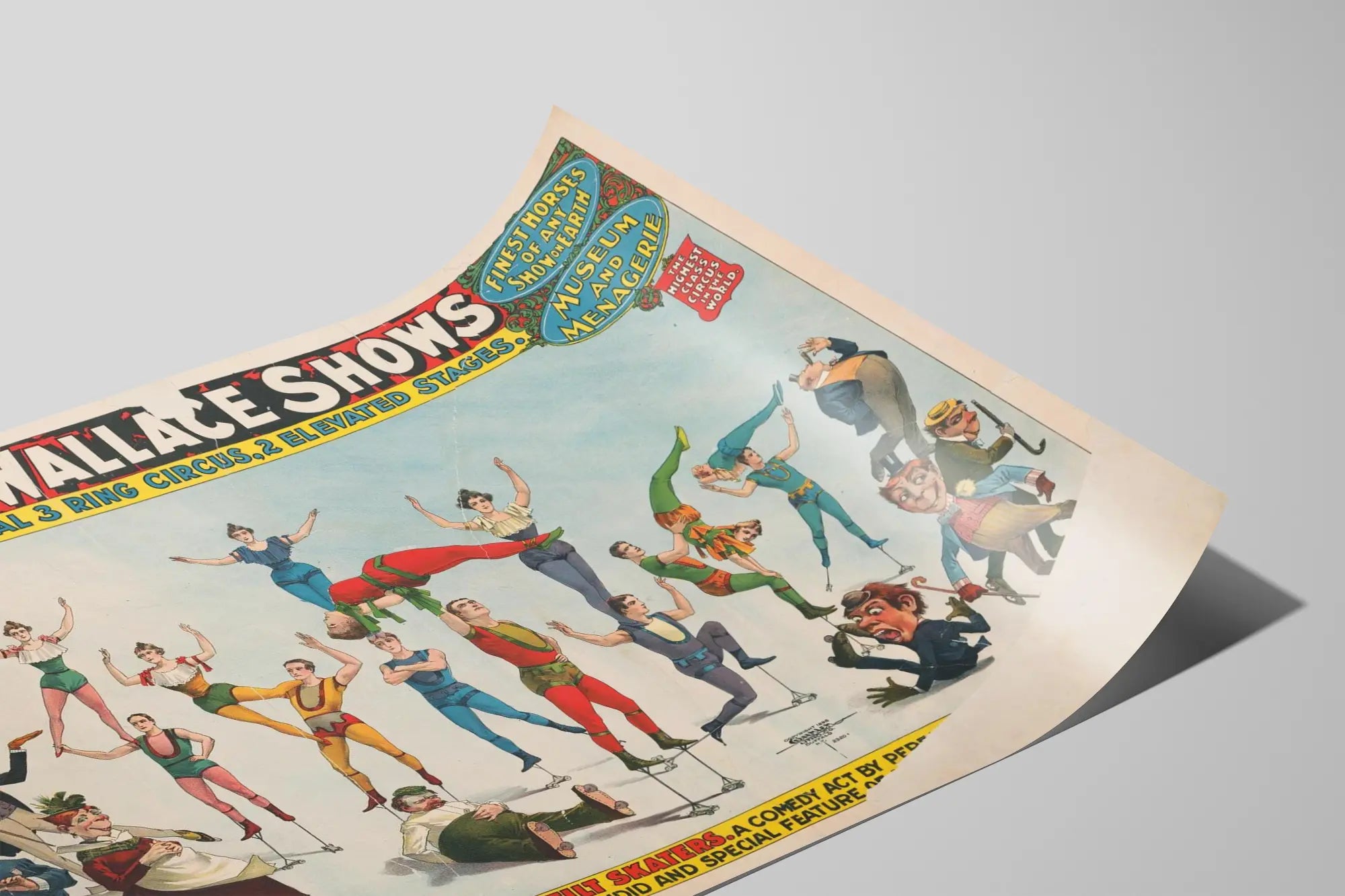 Affiche vintage Le Great Wallace Shows - Skaters sur échasses