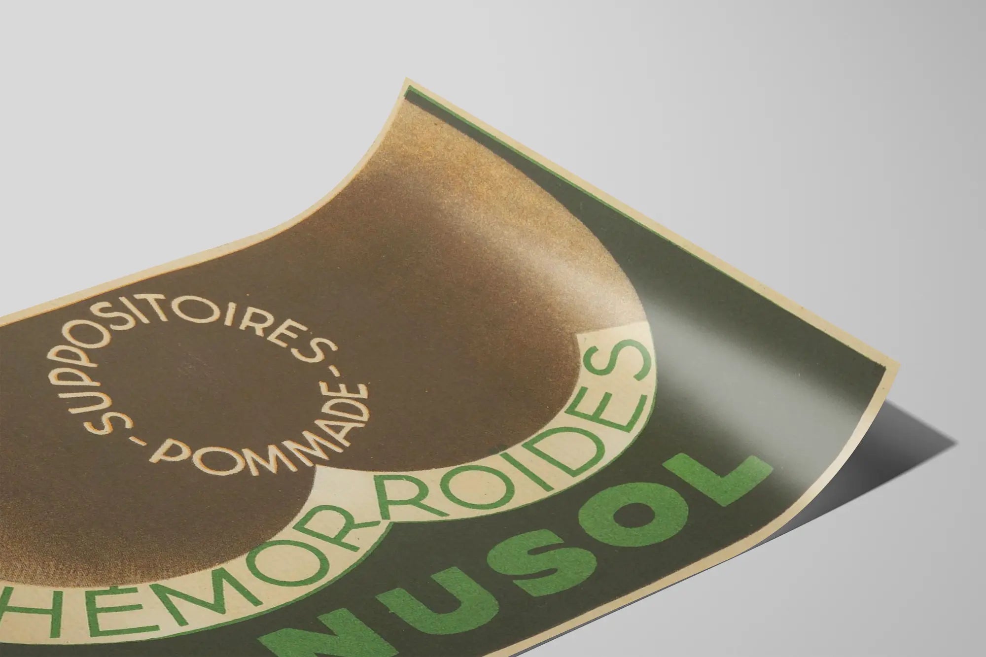 De Anusol-poster combineert esthetiek met een educatieve functie door te herinneren aan specifieke behandelingen zoals suppositoria en zalven voor aambeien, en door een zeer herkenbare grafische opzet. Deze wanddecoratie brengt een vleugje visuele geschiedenis in uw interieur, geworteld in traditionele medische reclame.