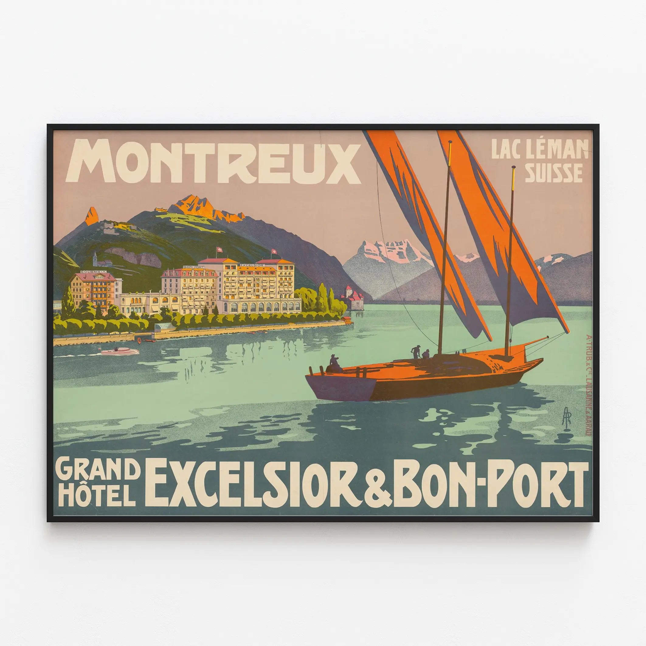 Vintage poster Montreux Grand Hôtel Excelsior & Bon-Port Lac Léman Zwitserland