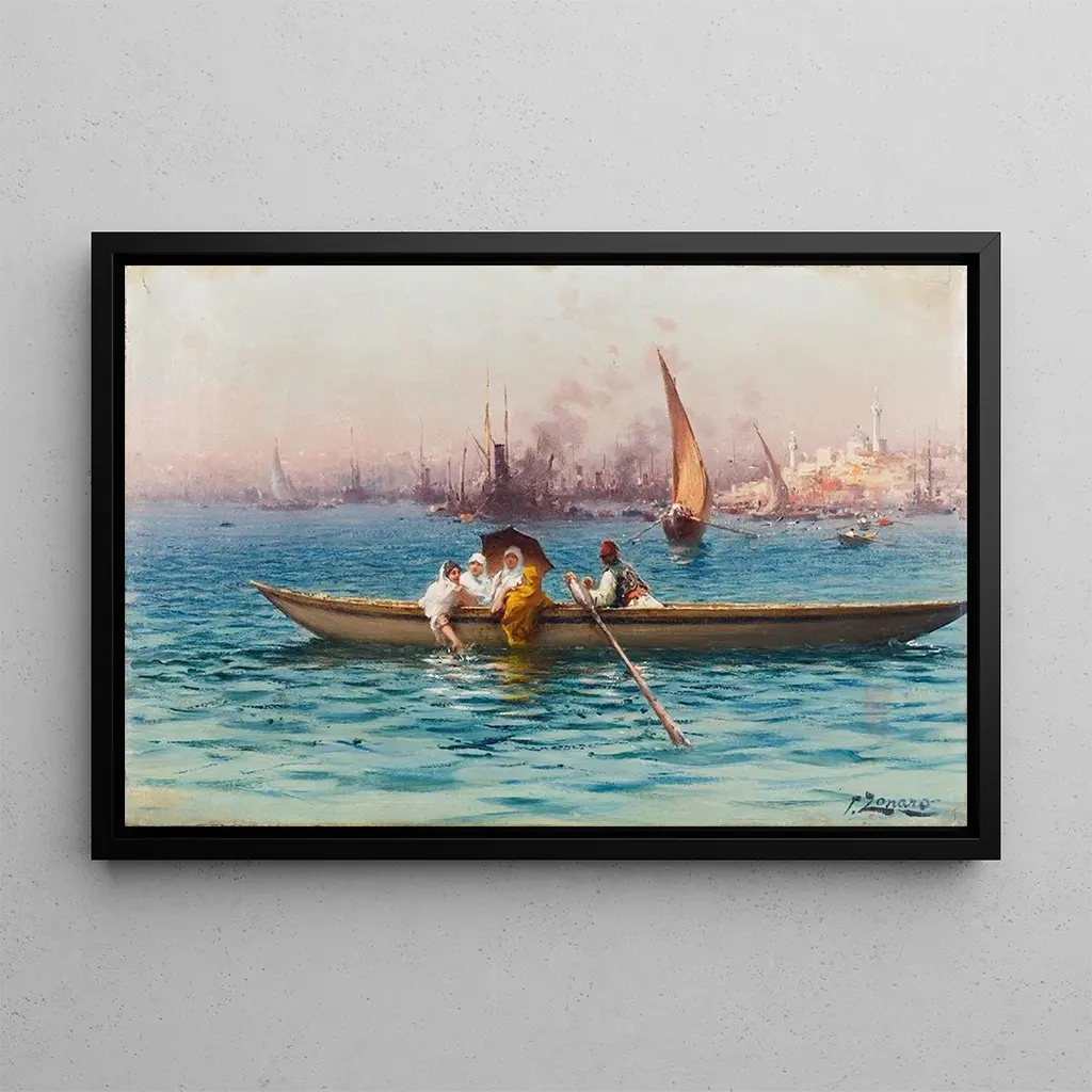 Amusement sur le caïque : een levendige scène uit het leven In dit levendige kunstwerk dompelt Fausto Zonaro ons onder in een bruisend maritiem tafereel. Het schilderij toont vrolijke personages die varen op een caïque, een traditioneel schip. De heldere kleuren, variërend van de diepe blauwen van de zee tot de warme tinten van de ondergaande zon, creëren een sfeer van geluk en vrijheid. Zonaro's impressionistische techniek, met zijn dynamische penseelstreken, brengt elk detail tot leven en maakt de beweging van de golven en het gelach van de protagonisten bijna voelbaar. Deze kunstdruk van Amusement sur le caïque nodigt uit tot een zintuiglijke ontsnapping, waarbij de kijker wordt meegenomen naar zonnige kusten. Fausto Zonaro : de kunstenaar van het mediterrane leven Fausto Zonaro, een Italiaanse schilder, wist de essentie van het mediterrane leven vast te leggen aan het einde van de 19e eeuw. Geïnspireerd door de impressionistische beweging ontwikkelde hij een unieke stijl die realisme combineert met heldere kleuraccenten. Gevestigd in Istanbul, was Zonaro getuige van een tijd van grote culturele en sociale veranderingen, wat zijn werk verrijkte. Zijn schilderijen, vaak geïnspireerd door het dagelijks leven en Turkse landschappen, getuigen van zijn gehechtheid aan de schoonheid van eenvoudige scènes. De waarde van Zonaro ligt in zijn vermogen om momenten van vreugde en sereniteit te vereeuwigen, waardoor hij een belangrijke figuur is in de kunst van zijn tijd. Een decoratief stuk met vele voordelen Kiezen voor de kunstdruk van Amusement sur le caïque betekent kiezen voor een doek die een vleugje frisheid en dynamiek aan uw interieur toevoegt. Of het nu in een woonkamer, kantoor of slaapkamer is, dit schilderij zal de aandacht trekken en gesprekken uitlokken. De afdrukkwaliteit garandeert een opmerkelijke trouw aan de kleuren en details van het originele werk, terwijl het ook een onmiskenbare esthetische aantrekkingskracht biedt. Door deze kunstdruk in uw decoratie te integreren, voegt u niet alleen een kunstwerk toe, maar ook een uitnodiging tot dromen en ontsnapping, waardoor uw ruimte verandert in een plek van sereniteit en vreugde.