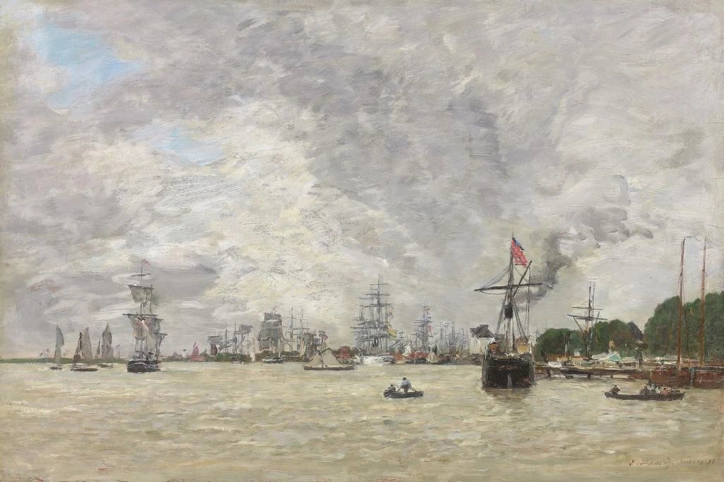 Antwerpen, Schepen op de Schelde - Eugène Boudin