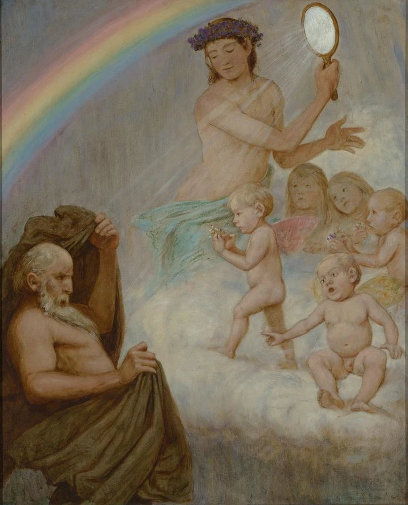 April, de godin van de lente, verblindt de winter - Hans Thoma