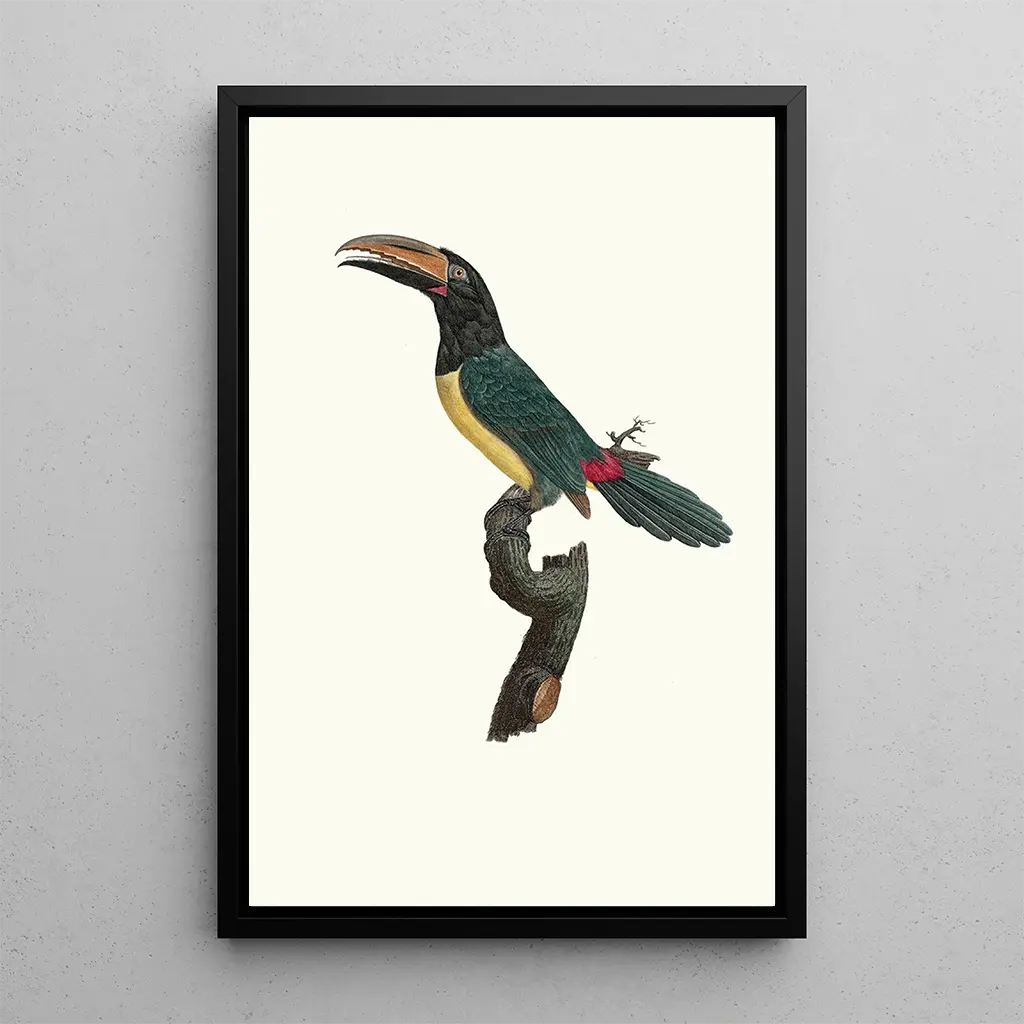 L'Aracari vert mâle : un éclat de couleurs tropicales L'Aracari vert mâle, avec son plumage éclatant et ses nuances vibrantes, évoque la richesse de la biodiversité des forêts tropicales. Ce tableau, réalisé par Jacques Barraband, capture l'essence même de cet oiseau fascinant. Les couleurs vives, allant du vert émeraude au jaune doré, se mêlent harmonieusement pour créer une atmosphère à la fois vivante et apaisante. La technique de Barraband, qui allie précision et délicatesse, permet de rendre chaque détail du plumage et du bec avec une fidélité remarquable. L'œuvre invite à une contemplation attentive, révélant la beauté naturelle de cet oiseau emblématique. Jacques Barraband : un maître de l'ornithologie artistique Jacques Barraband, actif au début du XIXe siècle, est reconnu pour ses illustrations ornithologiques qui allient science et art. Influencé par les découvertes naturalistes de son époque, il a su capturer la beauté des oiseaux avec une précision inégalée. Barraband a travaillé principalement pour des ouvrages scientifiques, mais ses œuvres, comme celle de l'Aracari vert mâle, transcendent le simple catalogage pour devenir de véritables œuvres d'art. Son style, à la fois réaliste et poétique, a marqué son époque et continue d'inspirer les amateurs d'art et de nature. L'importance de son travail réside dans sa capacité à sensibiliser le public à la beauté et à la diversité des espèces aviaires. Une acquisition décorative aux multiples atouts Opter pour une ((reproduction)) de L'Aracari vert mâle, c'est choisir une pièce décorative qui apportera une touche de nature et de couleur à votre intérieur. Que ce soit dans un salon, un bureau ou une chambre, ce tableau saura captiver le regard et susciter des conversations. La qualité de la ((reproduction)) garantit une fidélité aux détails et aux couleurs de l'œuvre originale, tout en offrant un attrait esthétique indéniable. En intégrant cette toile dans votre décoration, vous créez un espace harmonieux et inspirant, où l'art et la nature se rencontrent pour enrichir votre quotidien.
