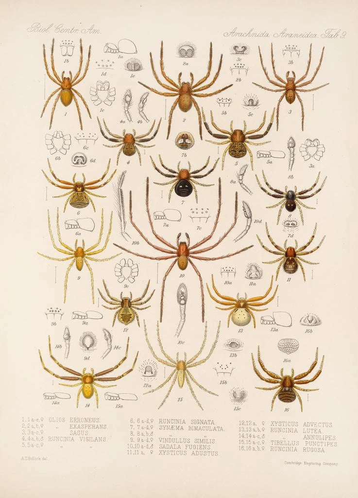 Kunstdruk | Arachnida Araneidea Pl 09 - Frederick DuCane Godman
