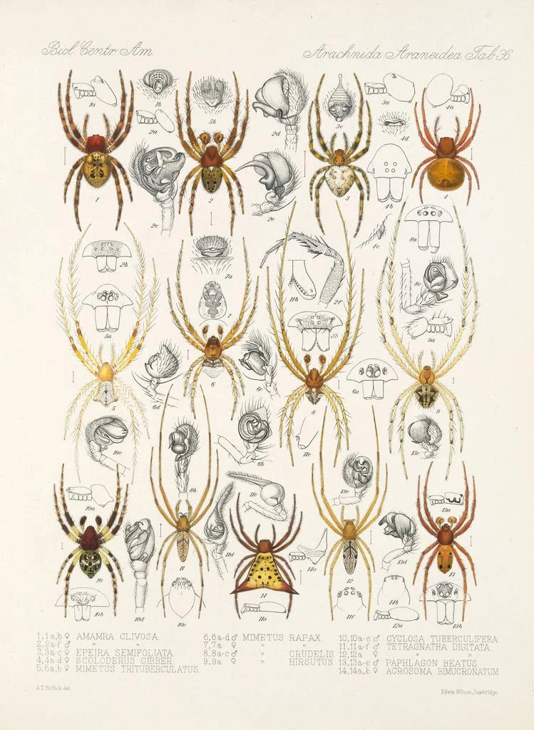 Kunstdruk | Arachnida Araneidea Pl 36 - Frederick DuCane Godman