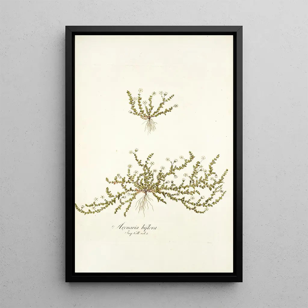 Arenaria biflora : een ode aan de alpine natuur De kunstdruk van Arenaria biflora, een werk van Nikolaus Joseph Freiherr von Jacquin, voert ons naar de hoogten van de bergen, waar deze zeldzame plant bloeit. Met een palet van delicate kleuren, variërend van zuiver wit tot nuances van groen, roept dit doek de frisheid van alpine landschappen op. De aquareltechniek, beheerst door Jacquin, maakt het mogelijk om de lichtheid en transparantie van de bloemblaadjes weer te geven, waardoor een etherische sfeer ontstaat. Elk detail wordt zorgvuldig bestudeerd, wat de fragiele schoonheid van deze soort onthult. Dit werk nodigt uit tot contemplatie en verwondering over de natuur. Nikolaus Joseph Freiherr von Jacquin : een kunstenaar in dienst van de wetenschap Nikolaus Joseph Freiherr von Jacquin, een Oostenrijkse botanist en kunstenaar uit de achttiende eeuw, heeft zijn tijd gekenmerkt door zijn bijdragen aan de botanica en de kunst. Zijn reizen brachten hem in contact met vele plantensoorten, die hij vervolgens documenteerde met opmerkelijke aandacht voor detail. Geïnspireerd door de wetenschappelijke stromingen van zijn tijd, wist Jacquin rigoureus en creatief te combineren, waardoor zijn werken referenties werden in het veld van botanische illustratie. De kunstdruk van Arenaria biflora illustreert perfect zijn talent, door wetenschappelijke precisie te combineren met verfijnde esthetiek. Een decoratief bezit met vele voordelen De kunstdruk van Arenaria biflora is een decoratief stuk dat uw interieur zal verrijken, of het nu in een woonkamer, kantoor of slaapkamer is. De afdrukkwaliteit garandeert een uitzonderlijke fideliteit aan de details van het originele werk, waardoor u het talent van Jacquin volledig kunt waarderen. De esthetische aantrekkingskracht van dit doek ligt in zijn vermogen om een vleugje natuur en sereniteit aan uw decoratie toe te voegen. Door deze kunstdruk te kiezen, voegt u niet alleen een kunstwerk toe aan uw ruimte, maar brengt u ook de schoonheid van de natuurlijke wereld in uw dagelijks leven.