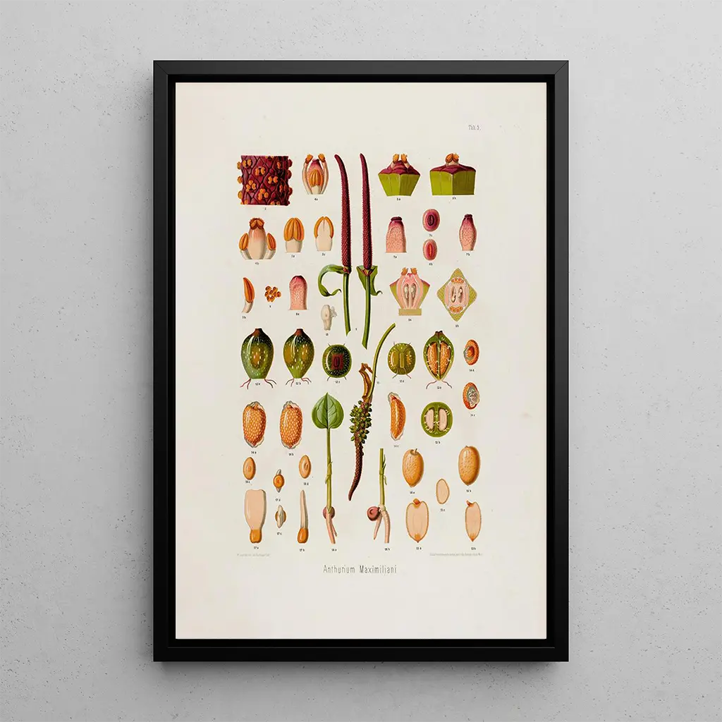 Heinrich Wilhelm Schott, actief in de 19e eeuw, wordt erkend als een van de pioniers van botanische illustratie. Zijn werken, waaronder "Aroideae Maximilianae Pl05", zijn het resultaat van zijn ontdekkingen en zijn liefde voor de botanica. Geïnspireerd door de ontdekkingen van zijn tijd, wist hij kunst en wetenschap te combineren, waardoor illustraties ontstonden die zowel esthetisch als informatief zijn. Schott heeft bijgedragen aan het begrip van tropische planten, waardoor zijn werken waardevol zijn voor botanici en kunstliefhebbers. Zijn nalatenschap leeft voort in zijn illustraties, die blijven inspireren en verwonderen.