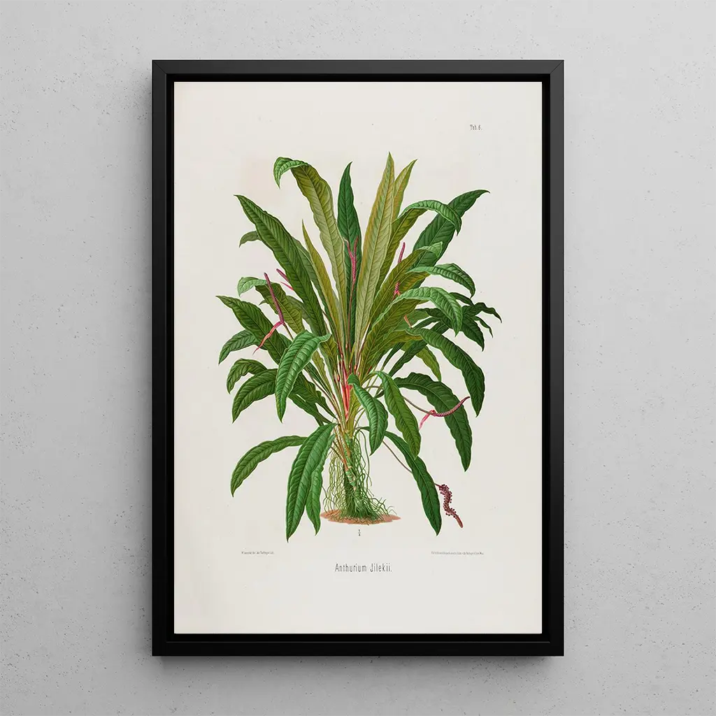Aroideae Maximilianae Pl06 : een ode aan de tropische biodiversiteit De kunstdruk Aroideae Maximilianae Pl06 dompelt ons onder in een weelderige wereld waar de natuur met éclat tot uiting komt. De tinten groen, variërend van licht tot donker, roepen de rijkdom van de tropische regenwouden op. De graveertechniek die door de kunstenaar wordt gebruikt, maakt het mogelijk om de delicate details van de bladeren en stengels vast te leggen, waardoor een sfeer ontstaat die zowel rustgevend als fascinerend is. Elk element van dit kunstwerk lijkt te vibreren onder het licht, en nodigt de kijker uit om de subtiliteiten van de flora te verkennen. Dit doek is een ware viering van natuurlijke schoonheid, een eerbetoon aan de diversiteit van plantensoorten. Heinrich Wilhelm Schott : een pionier in artistieke botanica Heinrich Wilhelm Schott, botanist en illustrator uit de 19e eeuw, wist wetenschap en kunst te combineren in zijn werken. Geboren in 1794, wijdde hij zijn leven aan de studie van tropische planten en werd hij een onmisbare figuur in de botanica. Zijn werk werd beïnvloed door de botanische verkenningen van zijn tijd, en hij werkte samen met wetenschappers om exotische flora te documenteren. Schott wordt vooral erkend om zijn illustraties van de familie Araceae, waartoe ook de Aroideae Maximilianae behoort. Zijn nauwgezette aanpak en aandacht voor detail hebben bijgedragen aan de bekendheid van minder bekende soorten, en zo de vooruitgang in botanische kennis bevorderd. Een decoratief stuk met vele voordelen De kunstdruk Aroideae Maximilianae Pl06 is een decoratief stuk dat harmonieus integreert in diverse ruimtes, of het nu een woonkamer, kantoor of slaapkamer is. De kwaliteit van de afdruk en de trouw aan de originele kleuren maken het een ideale keuze voor wie een vleugje natuur in huis wil brengen. De esthetische aantrekkingskracht van dit doek ligt in zijn vermogen om sereniteit en frisheid van tropische landschappen op te roepen. Door voor dit kunstwerk te kiezen, kiest u voor een decoratie die niet alleen verfraait, maar ook een verhaal vertelt over passie voor botanica en natuurlijke schoonheid.