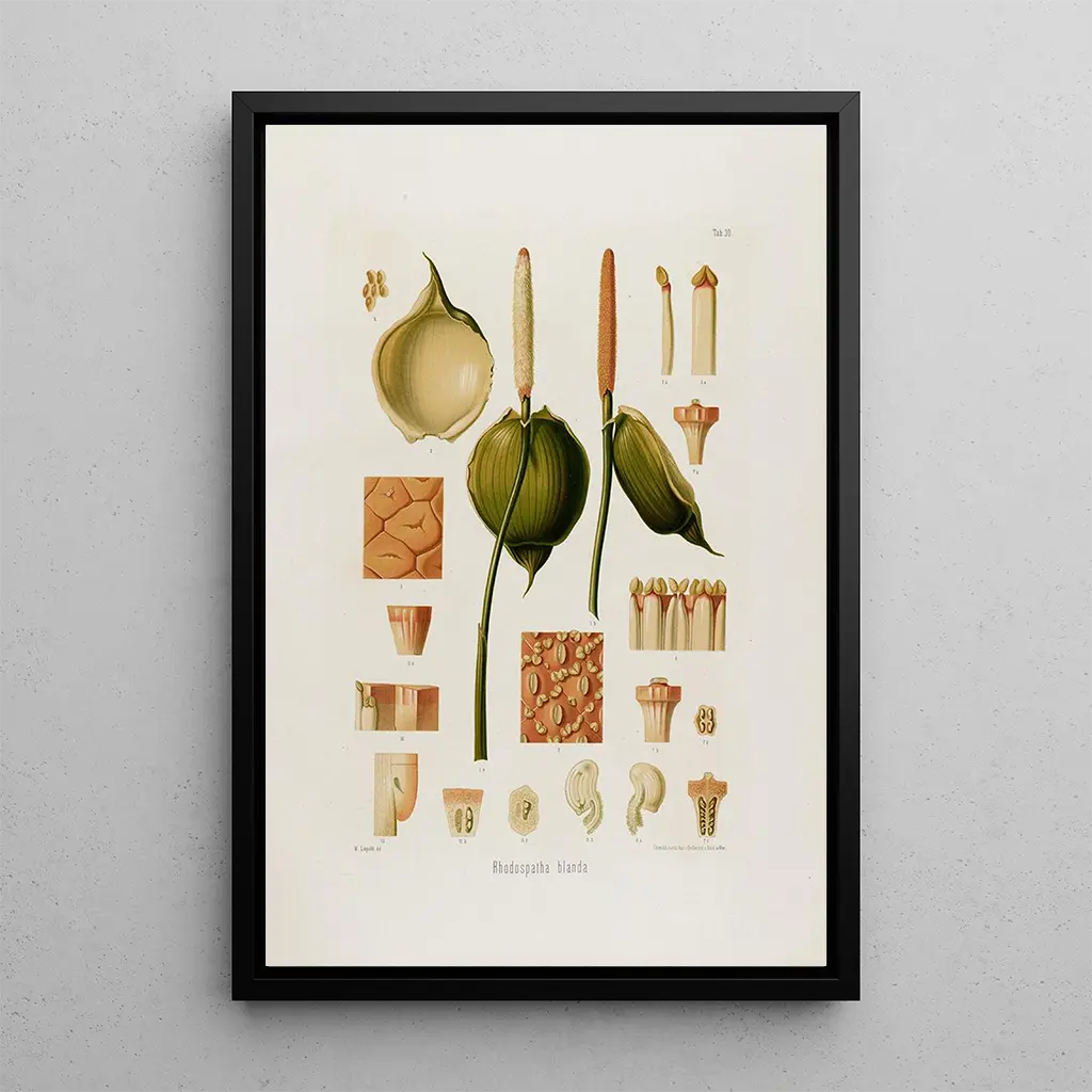 Aroideae Maximilianae Pl30 : een eerbetoon aan de plantdiversiteit "Aroideae Maximilianae Pl30" van Heinrich Wilhelm Schott is een kunstdruk die de rijkdom en diversiteit van aronskelkplanten viert. Dit kunstwerk onderscheidt zich door zijn levendige kleuren en gedetailleerde precisie, die de unieke structuur van de plant benadrukken. De tinten groen, geel en bruin mengen harmonieus, waardoor een visueel boeiend compositie ontstaat. De aquareltechniek maakt het mogelijk om de helderheid en textuur van de bladeren weer te geven, wat een meeslepende visuele ervaring biedt. Deze kunstdruk nodigt uit tot het ontdekken van een fascinerende botanische wereld, waarin elk blad een verhaal vertelt. Heinrich Wilhelm Schott : de kunstenaar in dienst van de wetenschap Heinrich Wilhelm Schott, botanist en illustrator, heeft de 19e eeuw gemarkeerd door zijn bijdragen aan de botanische illustratie. Zijn werk is het resultaat van een passie voor de natuur en een verlangen om de schoonheid van planten met de wereld te delen. Schott reisde door de tropen, observeerde en documenteerde de soorten die hij tegenkwam. Zijn kunstwerken, waaronder "Aroideae Maximilianae Pl30", zijn niet alleen artistieke representaties, maar ook waardevolle wetenschappelijke hulpmiddelen. Zijn nalatenschap leeft voort in zijn illustraties, die blijven inspireren voor botanici en kunstliefhebbers. Een decoratieve aanwinst met vele voordelen De kunstdruk "Aroideae Maximilianae Pl30" is een ideale decoratieve keuze om uw woonruimte te verrijken. Of het nu in een woonkamer, kantoor of slaapkamer is, deze doek brengt een vleugje frisheid en natuur. De afdrukkwaliteit garandeert een opmerkelijke fideliteit aan de details van het originele kunstwerk, terwijl het esthetisch aantrekkelijk blijft. Door dit kunstwerk in uw inrichting te integreren, creëert u een rustgevende en inspirerende omgeving, geschikt voor contemplatie en ontsnapping.