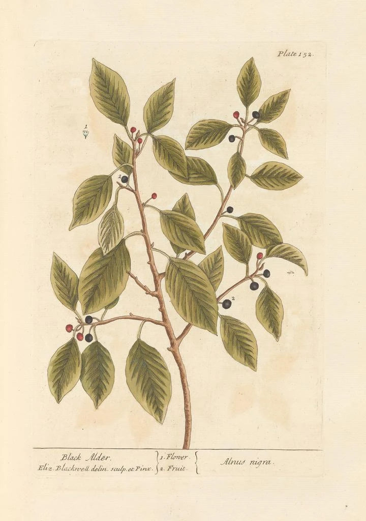 Elizabeth Blackwell, active au XVIIIe siècle, est reconnue comme l'une des premières femmes à se faire un nom dans le domaine de la illustration botanique. Son travail, influencé par les courants scientifiques de son époque, témoigne d'une passion pour la nature et d'un désir de rendre accessible la beauté des plantes au grand public. Blackwell a su allier art et science, contribuant ainsi à l'avancement des connaissances botaniques. Son œuvre, "Aulne noir", s'inscrit dans un contexte où l'observation de la nature était essentielle pour la médecine et l'agriculture, faisant d'elle une figure importante de son temps.