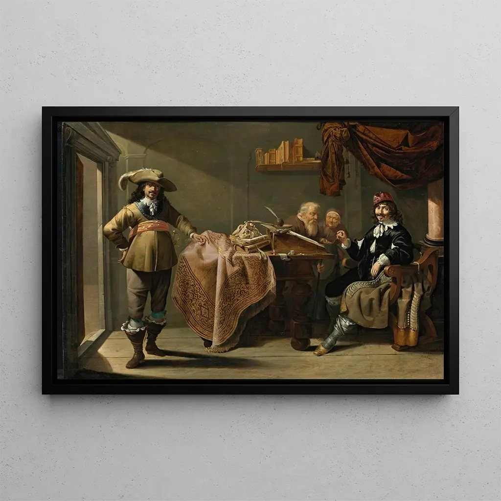 De kunstenaar achter "Aumône dans un bureau de notaire" wordt vaak geassocieerd met de schilderkunst van de 17e eeuw, een periode gekenmerkt door een diep realisme en bijzondere aandacht voor de details van het dagelijks leven. Geïnspireerd door de Vlaamse meesters, wist hij zeldzame emotionele diepgang te vangen in alledaagse momenten. Dit werk past binnen een context waarin liefdadigheid niet alleen een christelijke deugd was, maar ook een weerspiegeling van de sociale normen van die tijd. Notarissen, centrale figuren in de samenleving, worden hier afgebeeld in hun rol als bemiddelaars tussen verschillende sociale klassen, wat het belang van menselijke interacties benadrukt.