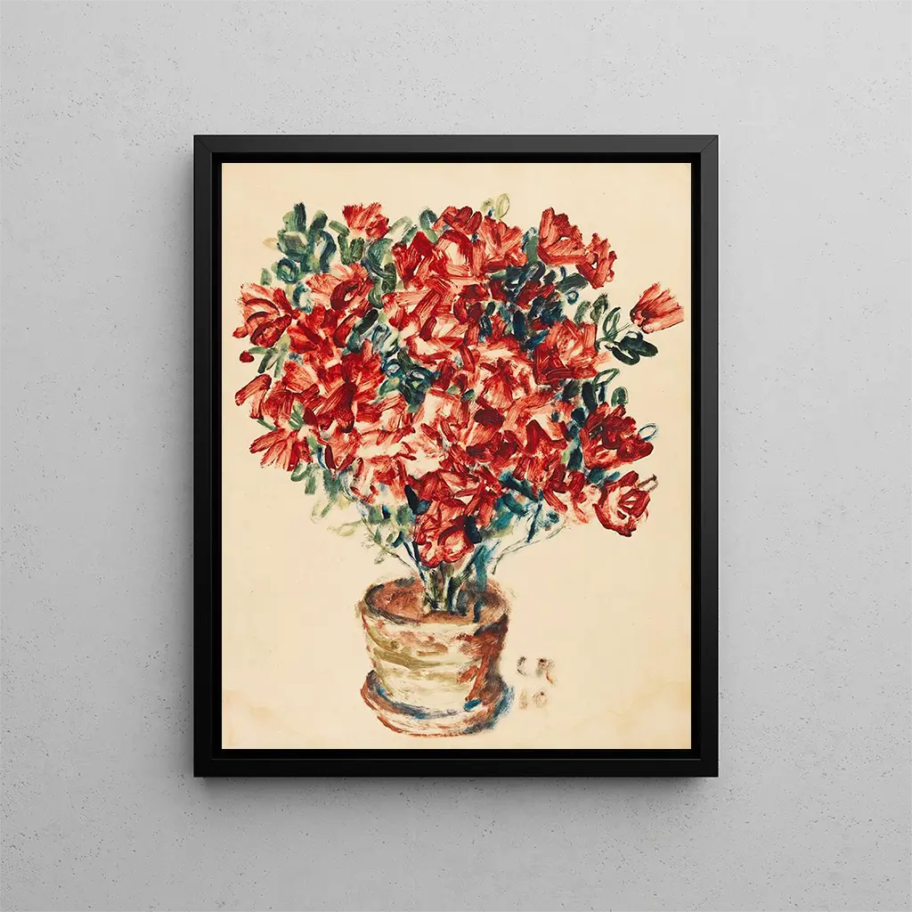 De stijl van Christian Rohlfs is zowel gedurfd als poëtisch, waarbij impressionisme en expressionisme worden gecombineerd. In "Azalées" gebruikt hij een palet van levendige kleuren die de warmte en helderheid van de lente oproepen. De penseelstreken zijn breed en vrijgevig, waardoor een textuur ontstaat die de bloemen tot leven brengt. Dit schilderij beperkt zich niet tot het weergeven van azalées, maar interpreteert ze, transformeert ze in een explosie van kleuren en vormen. De compositie is zorgvuldig georkestreerd, elk element is geplaatst met een intentie die de blik van de kijker begeleidt. Rohlfs slaagt erin een meeslepende sfeer te creëren waarin je je bijna meevoert naar een weelderige tuin, waar de bloemen in volle pracht bloeien. Dit werk is een ware ode aan de natuur, een viering van de vergankelijke schoonheid die ons omringt.