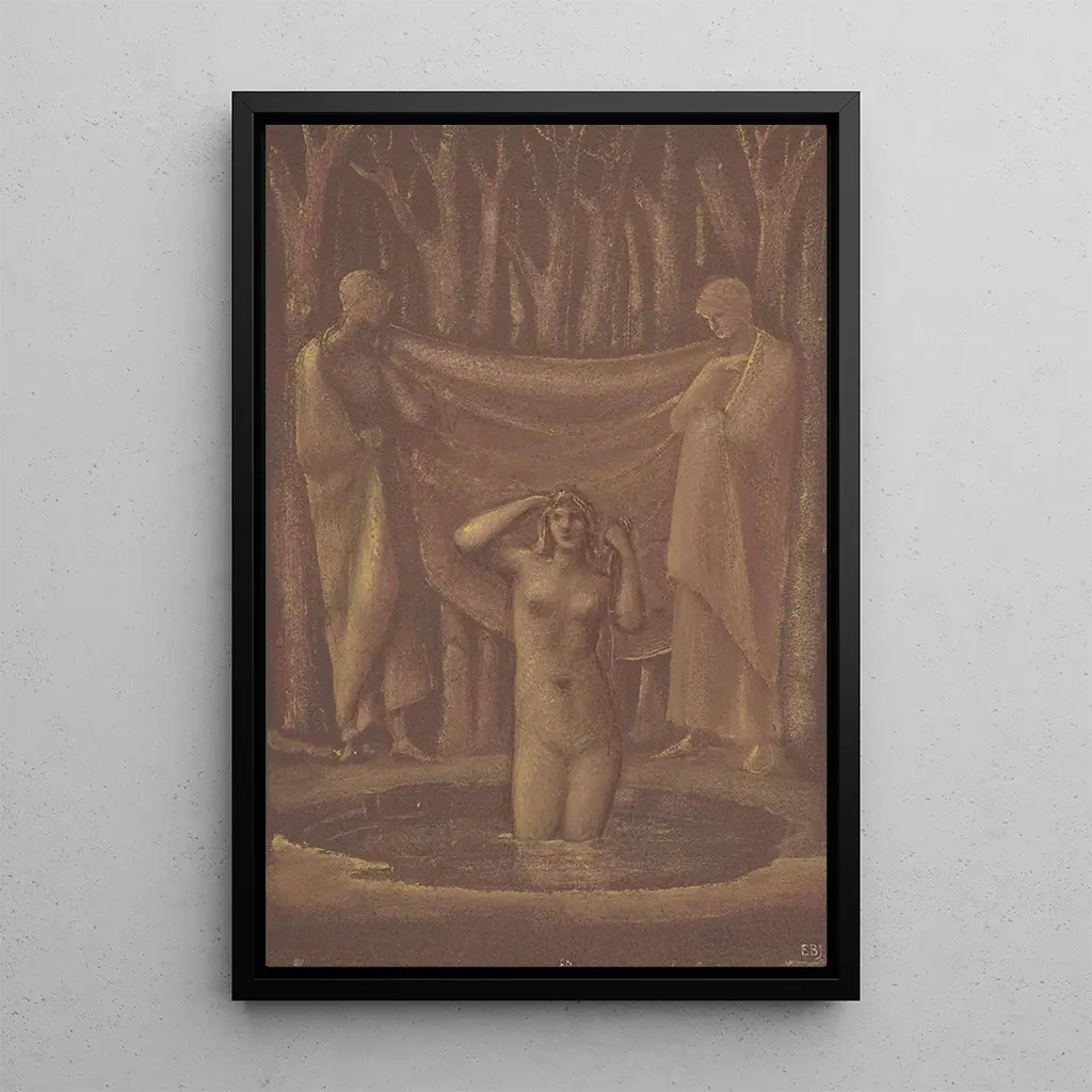 Bain de Vénus : een viering van schoonheid en liefde In "Bain de Vénus" biedt Sir Edward Coley Burne-Jones een betoverend beeld van de godin van de liefde, omringd door delicate nimfen. De scène is doordrenkt met zachte pastelkleuren, die de lichtheid en sensualiteit oproepen. De harmonieuze compositie en het subtiele gebruik van licht creëren een dromerige sfeer, waarin elk detail zorgvuldig is uitgewerkt. De vrouwelijke figuren, met gracieuze poses, lijken te dansen in het water, symboliserend schoonheid en harmonie. Dit kunstwerk is een ware ode aan liefde en schoonheid, die de essentie van de klassieke mythologie vastlegt. Sir Edward Coley Burne-Jones : een pionier van de prerafaëlieten Sir Edward Coley Burne-Jones, geboren in 1833, is een van de belangrijkste kunstenaars van de prerafaëlieten, die in het midden van de 19e eeuw opkwamen als reactie op het victorianisme. Geïnspireerd door romantiek en decoratieve kunsten, wist Burne-Jones een unieke stijl te creëren, die middeleeuwse en mythologische elementen combineert. "Bain de Vénus" is emblematisch voor zijn aanpak, die sensualiteit en spiritualiteit verenigt. Zijn werk heeft een blijvende invloed gehad op de Britse en Europese kunst, en hij wordt erkend om zijn vermogen om klassieke verhalen om te zetten in werken met grote emotionele diepgang. Een decoratief kunstdruk met vele troeven De kunstdruk van "Bain de Vénus" is een waardevolle aanvulling op elke kunstcollectie, die een vleugje romantiek en delicatessen toevoegt aan uw interieurdecoratie. Of het nu in een woonkamer, slaapkamer of kantoor is, dit schilderij weet de aandacht te trekken en gesprekken uit te lokken. De afdrukkwaliteit en het visuele aantrekkingskracht maken het een toegankelijke kunstwerk, dat de magie van het origineel behoudt. Door voor dit doek te kiezen, geeft u uw ruimte een artistieke en poëtische dimensie, terwijl u de tijdloze schoonheid van liefde viert.