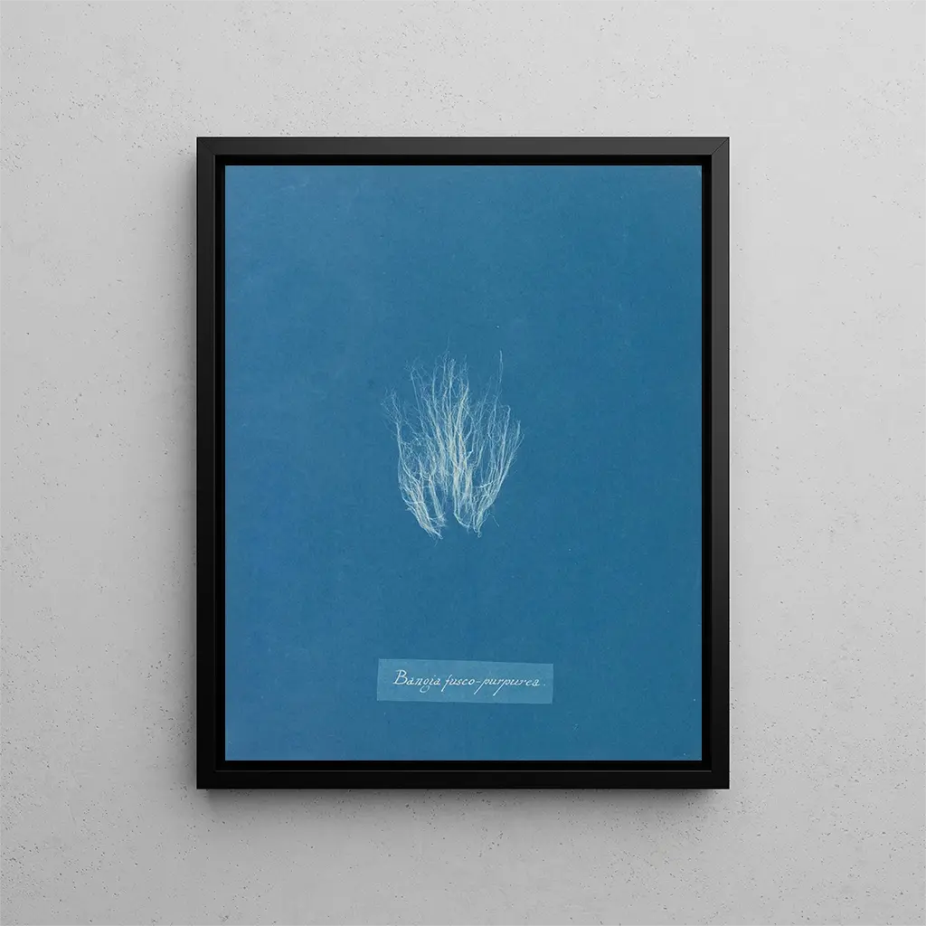 L'œuvre "Bangia fuscopurpurea" van Anna Atkins onderscheidt zich als een iconisch stuk uit de geschiedenis van de fotografie en botanische kunst. Gemaakt in de 19e eeuw, belichaamt dit werk de harmonie tussen wetenschap en esthetiek, waarbij wetenschappelijke precisie wordt gecombineerd met visuele schoonheid. Anna Atkins, pionier in het gebruik van cyanotype, wist de essentie van de natuur vast te leggen met een zeldzame delicatesse. Door dit werk te verkennen, duik je in een universum waar elk detail telt, waar licht en schaduw dansen op papier, en vormen en texturen worden onthuld met grote subtiliteit. Deze kunstdruk nodigt uit tot een aandachtige contemplatie, en roept reflectie op over onze relatie met de natuurlijke wereld.