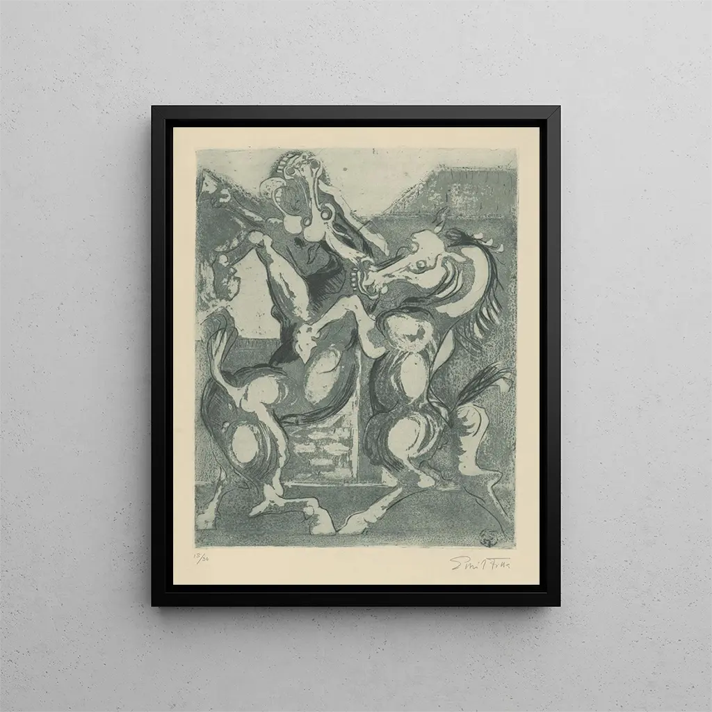 In het rijke en complexe universum van de moderne kunst staat het werk "Bataille" van Emil Filla als een levendig getuigenis van de innerlijke strijd en de psychologische spanningen die de mensheid beheersen. Dit stuk, zowel krachtig als evocatief, nodigt de kijker uit om onder te dompelen in een wereld van contrasten, waar geweld en schoonheid elkaar ontmoeten. De kunstdruk Bataille - Emil Filla biedt de mogelijkheid om dit iconische werk vanuit een nieuw perspectief te ontdekken, met een onderdompeling in de getroebleerde geest van de kunstenaar en de tumulten van zijn tijd. Via dit werk confronteert Filla ons met rauwe en diepe emoties, en zet ons aan tot nadenken over de aard van het bestaan.