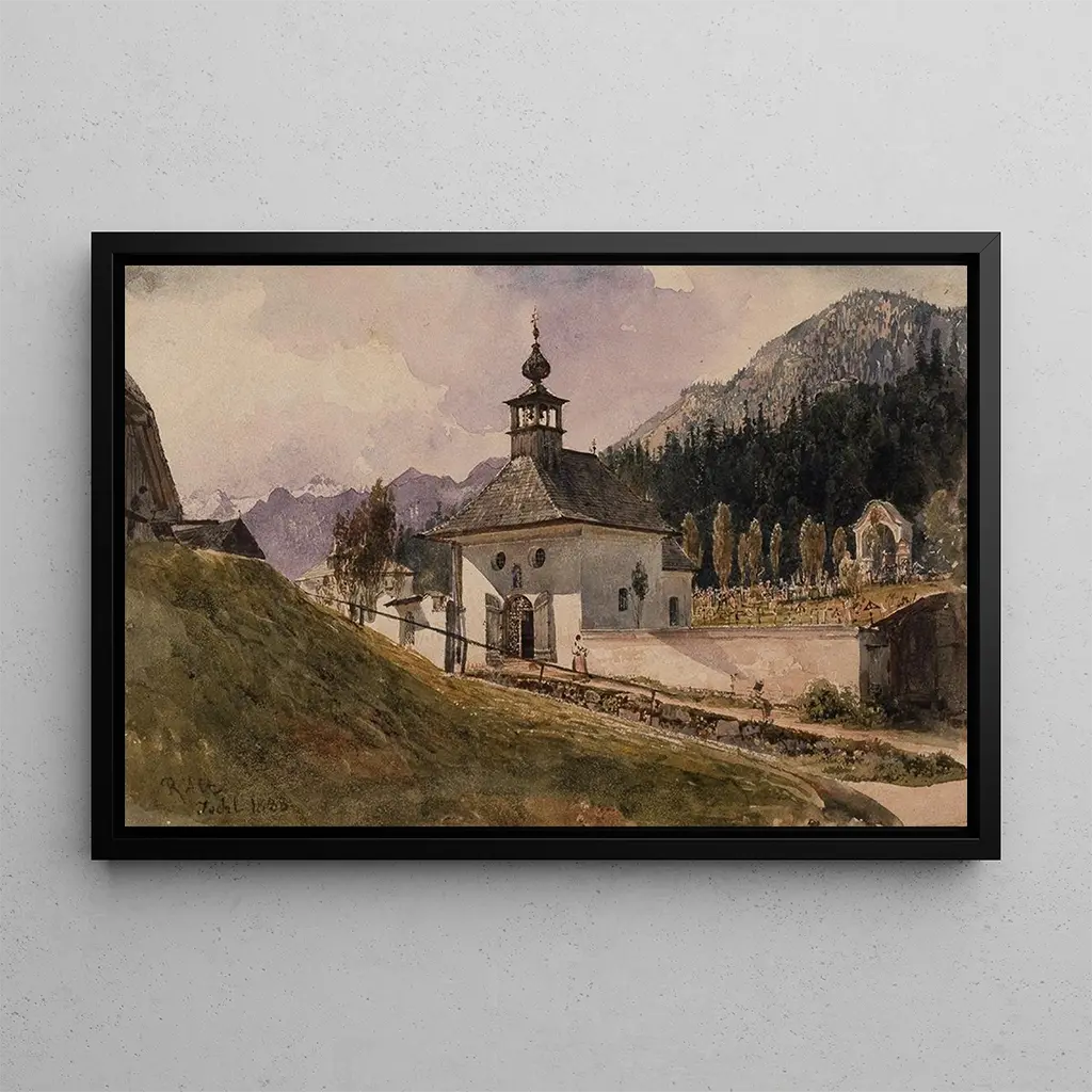 Begraafplaats in Ischl: een serene melancholie In "Begraafplaats in Ischl" brengt Rudolf von Alt ons naar een landschap doordrenkt met sereniteit en melancholie. Het doek onderscheidt zich door zijn zachte en rustgevende kleuren, waar de tinten groen en blauw harmonieus samensmelten. De aquareltechniek, beheerst door de kunstenaar, stelt hem in staat het licht en de sfeer van een plaats vol geschiedenis vast te leggen. De details van de graven en de bomen, met delicatesse behandeld, nodigen uit tot introspectieve contemplatie, en eren tegelijkertijd het geheugen van de overledenen terwijl ze de natuurlijke schoonheid van de omgeving vieren. Rudolf von Alt: een meester van de Oostenrijkse aquarel Rudolf von Alt, een iconische figuur van de 19e eeuw, wordt erkend om zijn landschappen en stadsgezichten, vooral in Oostenrijk. Geïnspireerd door het romantisme, wist hij de essentie van zijn tijd vast te leggen door middel van zijn werken. Zijn stijl, gekenmerkt door een minutieuze aandacht voor details en een subtiele toepassing van licht, heeft de geschiedenis van de Oostenrijkse kunst beïnvloed. Alt was ook lid van de Kunstacademie van Wenen en droeg bij aan de opkomst van de aquarel als artistieke techniek. "Begraafplaats in Ischl" getuigt van zijn talent en zijn toewijding aan een getrouwe weergave van de natuur en architectuur. Een decoratief kunstwerk met vele voordelen De kunstdruk van "Begraafplaats in Ischl" is een ideale keuze om uw interieur te verrijken. Of het nu in een woonkamer, kantoor of slaapkamer is, dit doek brengt een vleugje elegantie en rust in uw ruimte. De afdrukkwaliteit garandeert een opmerkelijke trouw aan de kleuren en details van het originele werk, terwijl het een onmiskenbare esthetische aantrekkingskracht biedt. Door deze kunstdruk in uw decor te integreren, creëert u een sfeer die bevorderlijk is voor reflectie en innerlijke rust, en viert u tegelijkertijd de artistieke erfenis van Rudolf von Alt.