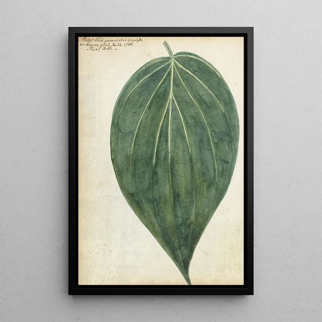 De "Feuille de bétel" is een kunstdruk die de eenvoudige en delicate schoonheid van de natuur oproept door middel van een harmonieuze compositie. Jan Brandes, met zijn oplettende blik, slaagt erin om de subtiele details van deze iconische plant vast te leggen, symbool van convivialiteit in vele Aziatische culturen. De levendige kleuren en de rijke texturen van de blad, benadrukt door zorgvuldig geplaatste belichting, creëren een rustgevende en contemplatieve sfeer. Dit stilleven beperkt zich niet tot het weergeven van een object, het nodigt uit tot reflectie over de tradities en rituelen die ermee verbonden zijn.