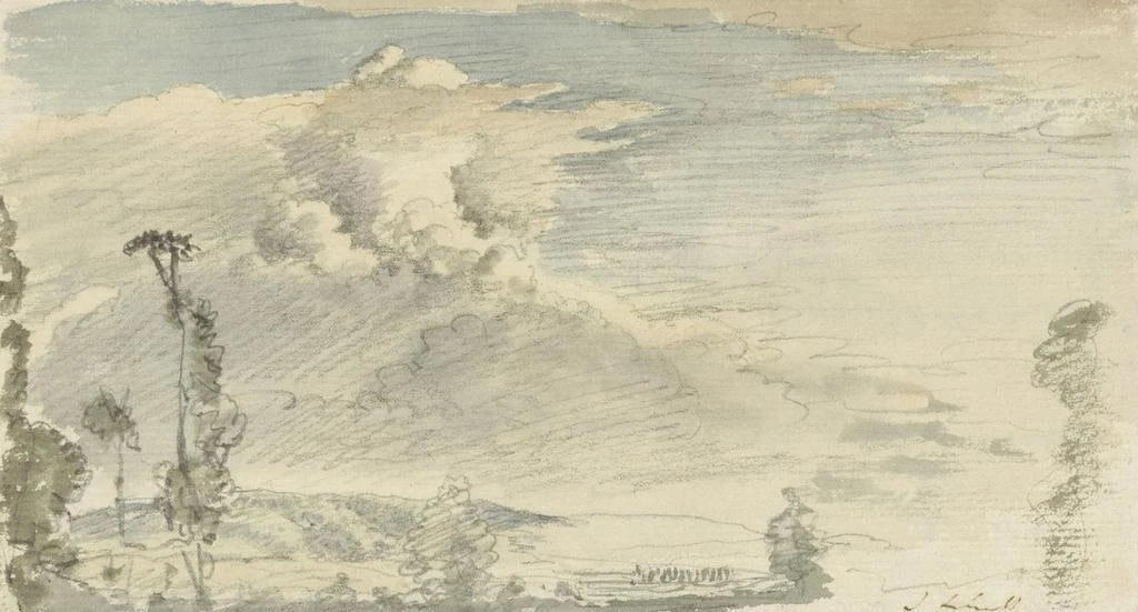 Bewolkte hemel boven een glooiend landschap - John Linnell