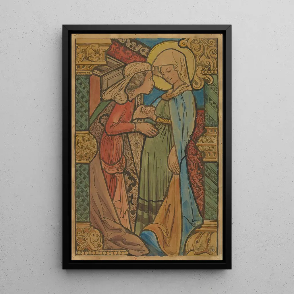 De kunstdruk van "Visitation" van Stanisław Wyspiański beeldt een moment van ontmoeting uit dat doordrenkt is van spiritualiteit en emotie. De figuren van Maria en Elisabeth, omgeven door een zachte en warme lichtstraal, lijken elkaar toe te vertrouwen in een sfeer vol tederheid. De pastelkleuren, gemengd met fellere accenten, creëren een harmonieuze balans, terwijl de dynamische compositie de blik door deze heilige scène leidt. Wyspiański slaagt er met zijn talent in om de intimiteit van dit bijbelse moment vast te leggen, waardoor dit werk een ware uitnodiging is tot reflectie over familie- en spirituele banden.
