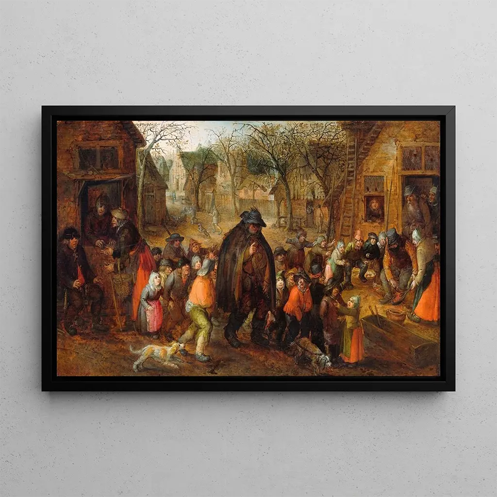De Joueur de vielle aveugle is een kunstdruk die melancholie en de schoonheid van muziek oproept. De scène toont een muzikant, met gesloten ogen, verloren in zijn kunst, terwijl zijn instrument noten uitzendt die lijken te zweven in de lucht. De donkere kleuren en schaduwen versterken de intensiteit van het moment, en creëren een intieme en emotionele sfeer. David Vinckboons, met zijn beheersing van details, slaagt erin een diepe verbinding tussen de muzikant en zijn instrument over te brengen, en nodigt de kijker uit om de magie van muziek te voelen door deze doek.