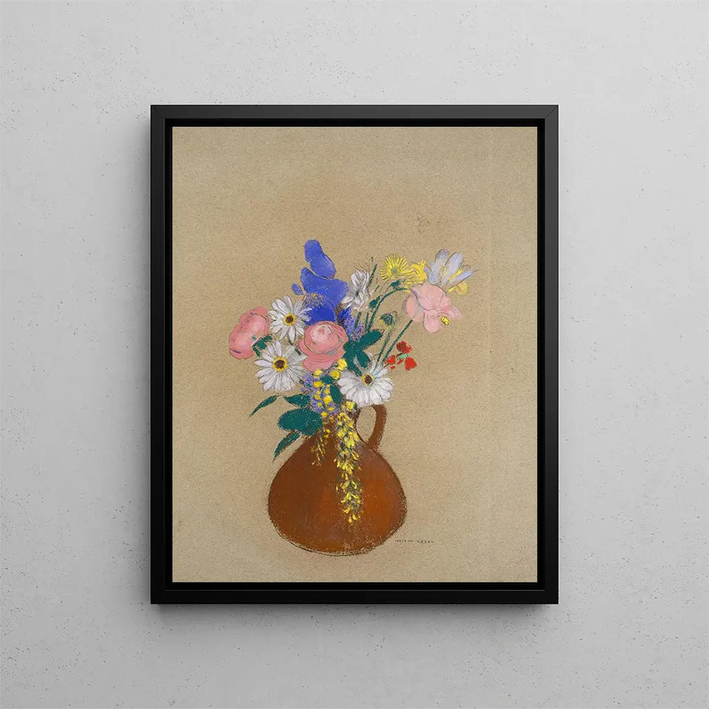 Bloemenboeket in een bruine klei vaas - Odilon Redon