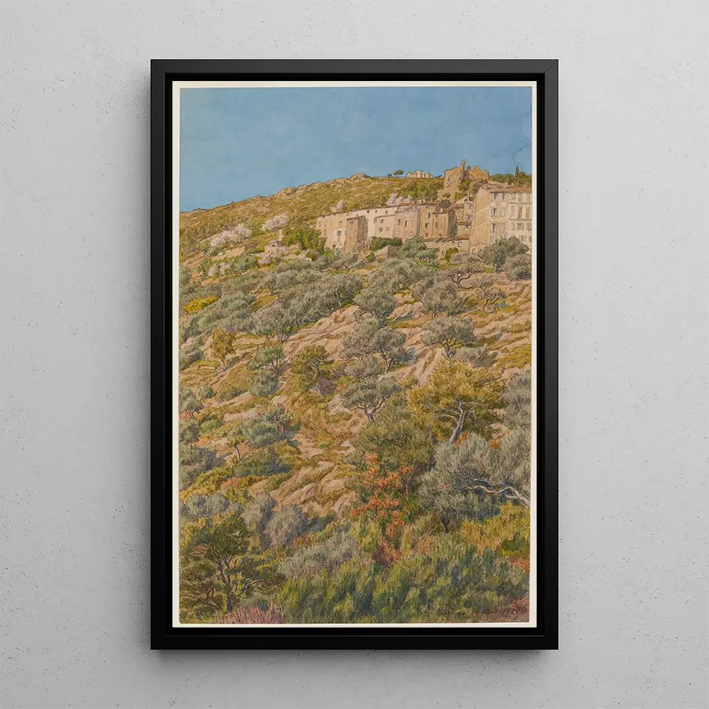 In "Bormes" brengt Henri Rivière ons naar het hart van een mediterrane landschap dat barst van kleuren en licht. Dit doek roept de schoonheid op van de landschappen in het zuiden van Frankrijk, waar heuvels samensmelten met de zee in een perfecte harmonie. De pastelkleuren en de vloeiende penseelstreken van Rivière creëren een serene en rustgevende sfeer, die de kijker uitnodigt om te ontsnappen in deze natuurlijke omgeving. De compositie, zowel eenvoudig als suggestief, vangt de essentie van de regio en eert de schoonheid van de plek.