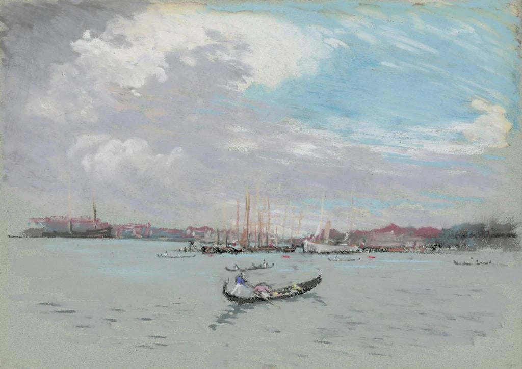 "En Dehors de Venise" van Joseph Pennell vangt de magie van de kanalen van de beroemde Italiaanse stad, en biedt een uniek perspectief op haar iconische architectuur. Het doek onderscheidt zich door zijn levendige kleuren en vloeiende lijnen, die de beweging van gondels die over het water glijden, oproepen. Pennell, met zijn onderscheidende stijl, gebruikt graveer- en schildertechnieken om een sfeer te creëren die zowel dynamisch als nostalgisch is. Het werk nodigt de kijker uit om onder te dompelen in de essentie van Venetië, waar elke penseelstreek lijkt te vertellen over reizen en ontdekking.