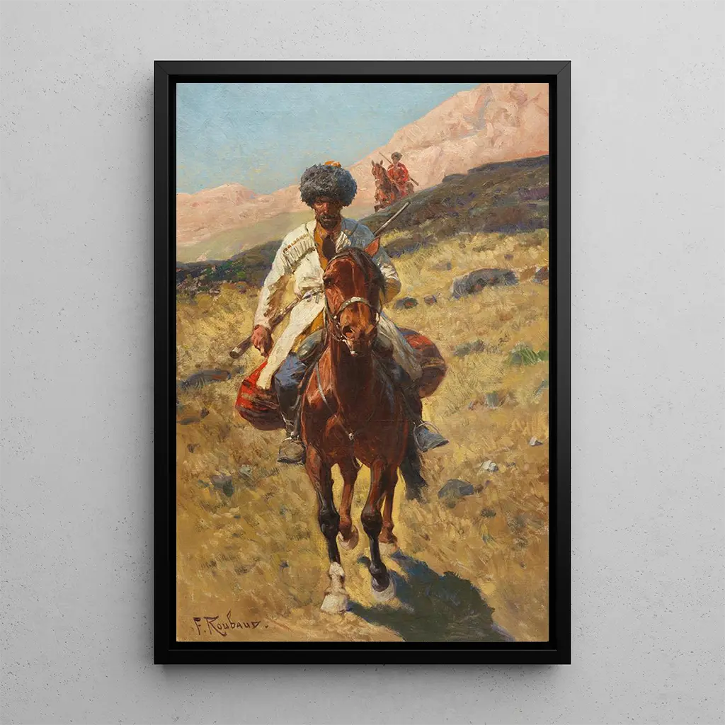 Franz Roubaud, schilder en illustrator van Russische afkomst, wordt erkend om zijn kunstdrukken die de geschiedenis en tradities van de volkeren uit de Kaukasus vieren. Actief aan het einde van de 19e eeuw, werd hij beïnvloed door de realistische beweging, die streefde naar het vastleggen van het dagelijks leven en belangrijke gebeurtenissen uit zijn tijd. Roubaud was ook een fervent voorvechter van de Kaukasische cultuur, wat terug te zien is in zijn kunstdrukken. Zijn vermogen om de grootsheid van landschappen en de waardigheid van de personages te weergeven, maakte hem tot een belangrijke figuur in de kunstdruk geschiedenis, en zijn werken worden vaak tentoongesteld in prestigieuze musea.