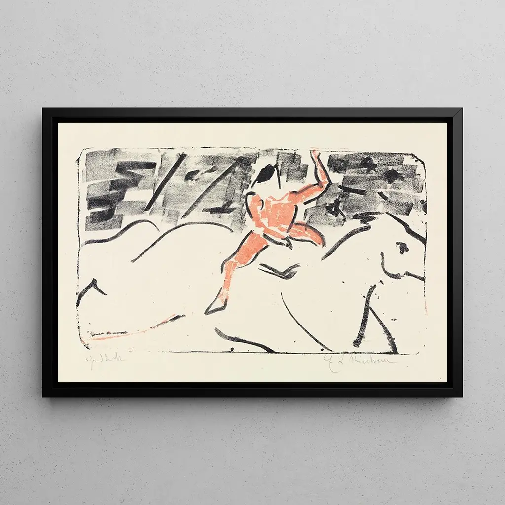 Cavalier de cirque sur un cheval blanc : une danse entre l'homme et l'animal Dans cette œuvre vibrante, Ernst Ludwig Kirchner capture l'énergie d'un cavalier de cirque sur un majestueux cheval blanc. Les couleurs éclatantes et les traits expressifs évoquent une atmosphère de mouvement et de dynamisme. Le fond, à la fois abstrait et suggestif, accentue la présence du cavalier, tandis que les nuances de blanc et de bleu créent un contraste saisissant. Kirchner, avec sa technique audacieuse, parvient à transmettre une sensation de liberté et de joie, invitant le spectateur à plonger dans cet univers festif où l'homme et l'animal semblent en parfaite harmonie. Ernst Ludwig Kirchner : pionnier de l'expressionnisme allemand Artiste majeur du début du XXe siècle, Ernst Ludwig Kirchner est l'un des fondateurs du mouvement expressionniste. Influencé par le fauvisme et l'art primitif, il développe un style audacieux, caractérisé par des couleurs vives et des formes déformées. Kirchner, qui a vécu une période tumultueuse marquée par la guerre et la maladie, utilise son art pour exprimer ses émotions et ses réflexions sur la société. Son œuvre, souvent autobiographique, reflète ses luttes intérieures et son désir de liberté. Le cavalier de cirque sur un cheval blanc s'inscrit dans cette quête d'évasion et de célébration de la vie. Une acquisition décorative aux multiples atouts Cette kunstdruk du Cavalier de cirque sur un cheval blanc est un choix idéal pour embellir votre intérieur, que ce soit dans un salon, un bureau ou une chambre. Sa qualité d'impression et sa fidélité à l'œuvre originale garantissent un attrait esthétique indéniable. En intégrant ce tableau dans votre décoration, vous apportez une touche d'énergie et de mouvement à votre espace. Ce tableau, avec son ambiance festive, saura captiver vos invités et enrichir votre environnement de manière unique et inspirante.