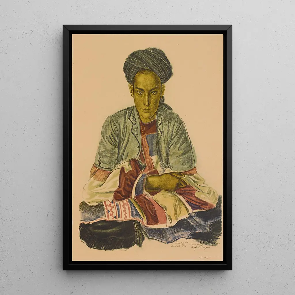 Né en 1900, Alexandre Iacovleff est un artiste dont les œuvres sont profondément marquées par ses voyages en Afrique du Nord et au Moyen-Orient. Son style, à la croisée du réalisme et de l’orientalisme, reflète une fascination pour les modes de vie nomades. Cherzea, en tant que fils d’un chef, incarne les valeurs et les traditions d’un peuple en voie de disparition, ce qui confère à l'œuvre une dimension historique et sociale. À travers ses portraits, Iacovleff parvient à capturer l’essence même de ces cultures, offrant ainsi un témoignage précieux de leur existence.