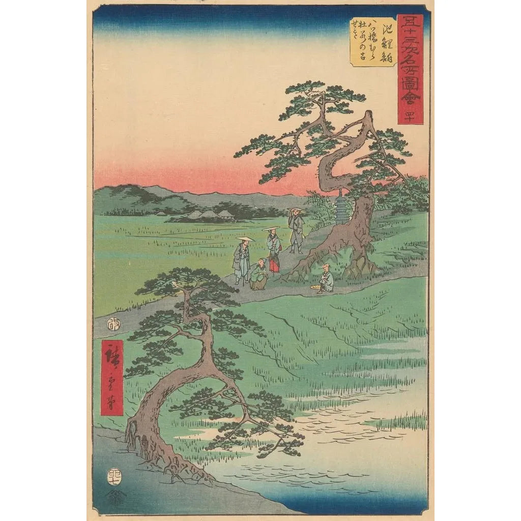 "Chiriu" van Andō Hiroshige is een kunstdruk die de vergankelijke schoonheid van de Japanse natuur vastlegt. Dit doek, rijk aan details, toont een landschap waar de fijnheid van de bloemen en de vloeiendheid van de rivieren harmonieus samenkomen. De pastelkleuren, typisch voor de Japanse ukiyo-e, creëren een sfeer van rust en sereniteit. Hiroshige, meester van de ukiyo-e, gebruikt houtgravuretechnieken om elk element levendig te maken en de kijker uit te nodigen zich onder te dompelen in dit poëtische en contemplatieve schilderij.