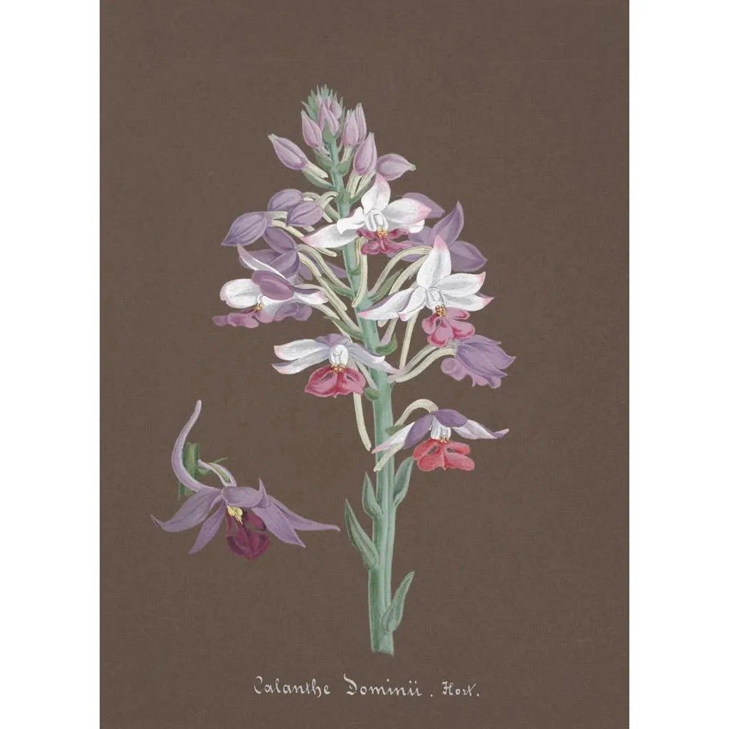 De bloemkunst, vooral de voorstelling van orchideeën, heeft altijd een voorname plaats ingenomen in de kunstgeschiedenis. De anonieme kunstenaar van dit werk past binnen een traditie waarin de natuur wordt benadrukt, vaak als symbool van schoonheid en zeldzaamheid. Door de eeuwen heen hebben orchideeën vele kunstenaars geïnspireerd, wat getuigt van hun universele aantrekkingskracht. Het ontbreken van een naam vermindert niet de rijkdom van dit werk, dat de esthetiek en de zorgen van een tijdperk weerspiegelt waarin de natuur met passie werd gevierd.