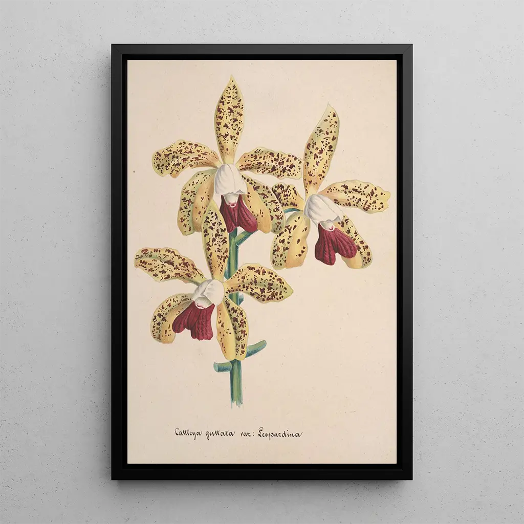 Collectie van orchideeën Pl96: een symfonie van kleuren en vormen De kunstdruk van de Collectie van orchideeën Pl96 onthult een bloemrijk spektakel waar de heldere kleuren harmonieus samenkomen. De levendige tinten geel, rood en blauw ontmoeten elkaar om een dynamische en boeiende compositie te creëren. Elke orchidee, met een minutieuze aandacht voor detail weergegeven, lijkt te vibreren van energie, en biedt een gevoel van leven en beweging. De gebruikte techniek, waarschijnlijk geïnspireerd door aquarel, speelt met transparantie en licht, waardoor het kunstwerk een sfeer krijgt die zowel vrolijk als rustgevend is. Dit schilderij nodigt uit tot een visuele verkenning, waarbij elke bloem een uniek verhaal vertelt. Anoniem: een reflectie van bloemkunst op haar hoogtepunt De anonieme kunstenaar van dit werk past binnen een rijke artistieke traditie, waarin bloemen, en vooral orchideeën, worden gevierd om hun schoonheid en symboliek. Dit kunstwerk komt uit een periode waarin bloemkunst een bloei doormaakte, vooral in de 19e eeuw, toen botanische verkenningen het publiek fascineerden. Hoewel de identiteit van de kunstenaar verloren is gegaan in de tijd, getuigt zijn werk van grote technische beheersing en een gevoeligheid voor de natuur. De invloeden uit die tijd, gekenmerkt door een groeiende interesse in botanica en bloemesthetiek, zijn terug te vinden in deze levendige en levendige compositie. Een decoratieve aankoop met vele voordelen De kunstdruk van de Collectie van orchideeën Pl96 is een perfecte decoratieve keuze om een vleugje kleur en vitaliteit aan uw interieur toe te voegen. Of het nu in een woonkamer, kantoor of slaapkamer is, dit kunstwerk past gemakkelijk in diverse decoratiestijlen en voegt een fris en elegant accent toe. De kwaliteit van de afdruk garandeert een opmerkelijke fideliteit aan de details van het originele werk, waardoor u de schoonheid volledig kunt waarderen. Door te kiezen voor deze kunstdruk, kiest u een stuk dat niet alleen uw ruimte verfraait, maar ook een gevoel van vreugde en sereniteit oproept, en elke blik transformeert in een verrijkende ervaring.