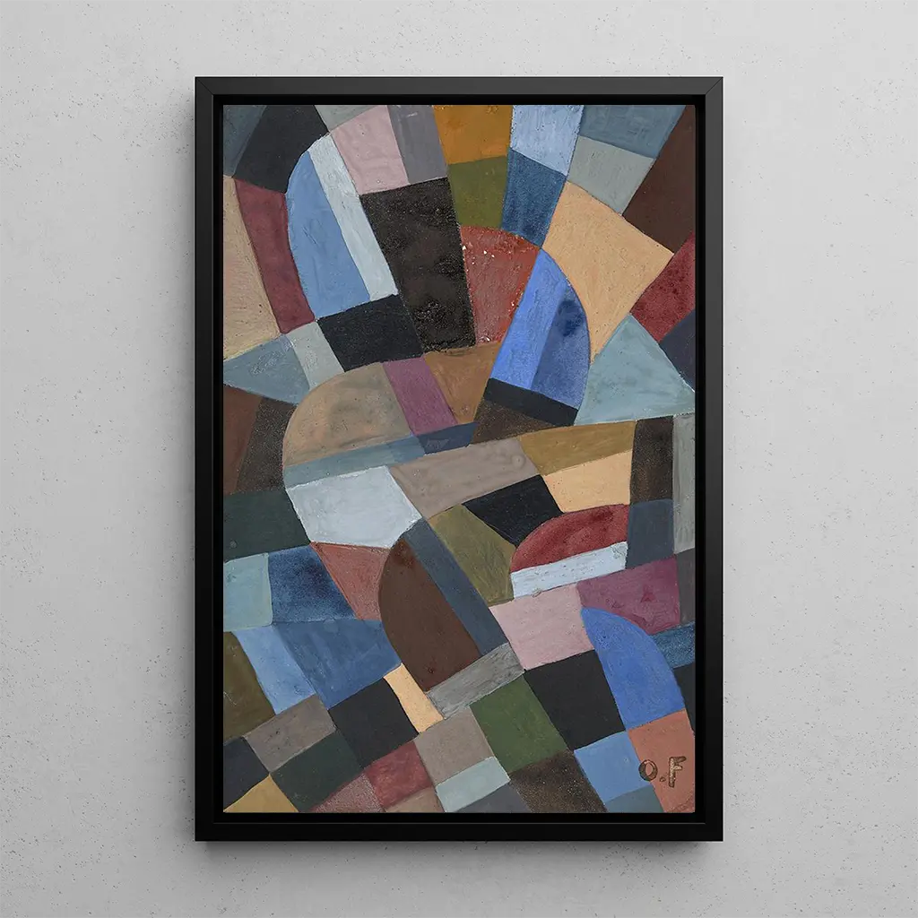 "Composition" van Otto Freundlich is een kunstdruk die de essentie van geometrische abstractie belichaamt. De verweven vormen en de heldere kleuren combineren om een visuele dynamiek te creëren die onmiddellijk de aandacht trekt. De vloeiende lijnen en scherpe hoeken komen samen in een symfonie van bewegingen, die een gevoel van diepte en beweging oproepen. Dit doek, rijk aan texturen en nuances, nodigt de kijker uit om de relaties tussen de elementen te verkennen, terwijl het een unieke en meeslepende esthetische ervaring biedt.