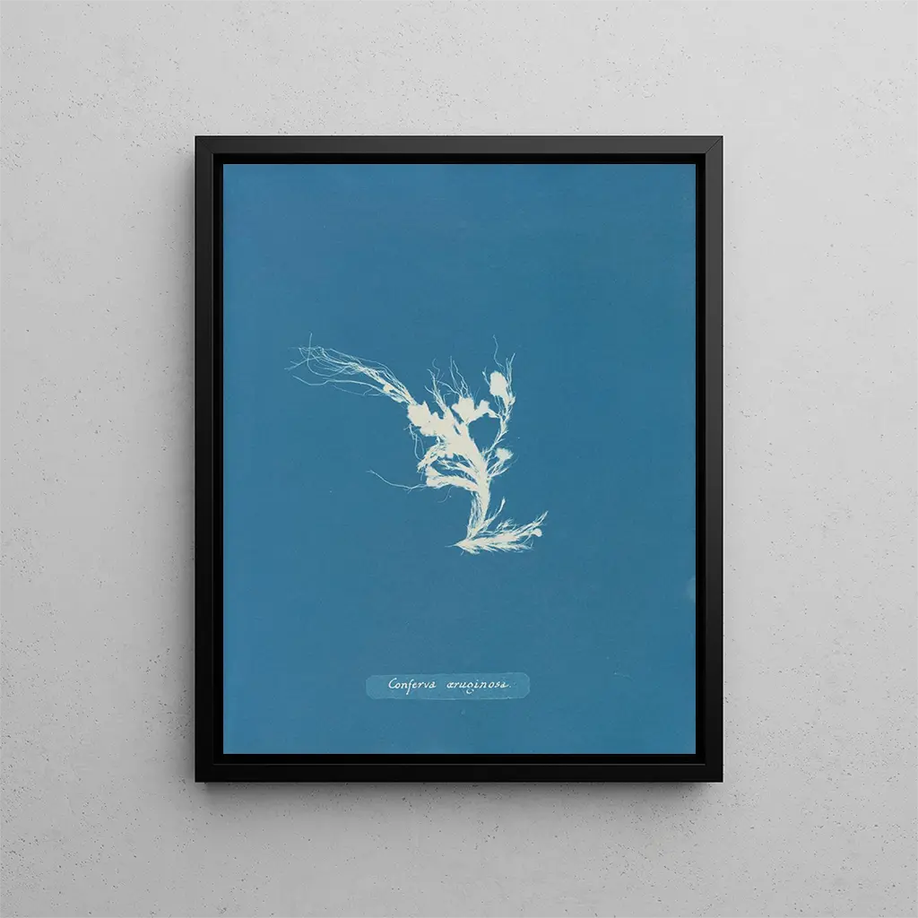 In de fascinerende wereld van botanische kunst onderscheidt de "Conferva rouillé" van Anna Atkins zich door haar vernieuwende aanpak en visuele verfijning. Dit stuk, dat deel uitmaakt van de voorlopers van de fotografie, belichaamt de samensmelting van wetenschap en esthetiek. Door gebruik te maken van de cyanotypetechniek wist Atkins de vergankelijke schoonheid van algen vast te leggen, waardoor een eenvoudig specimen werd omgevormd tot een tijdloos kunstwerk. Het licht, de schaduw en de nuances van blauw mengen zich tot een sfeer die zowel sereen als introspectief is, en nodigt de kijker uit om de natuur vanuit een nieuw perspectief te bekijken.