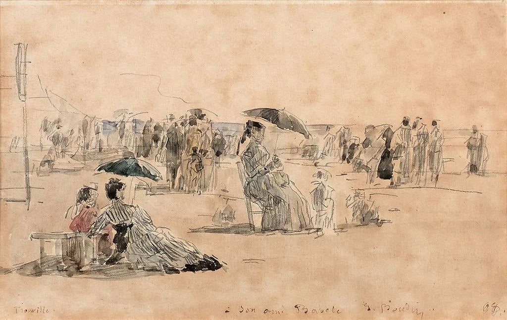 Crinolines op het strand van Trouville - Eugène Boudin