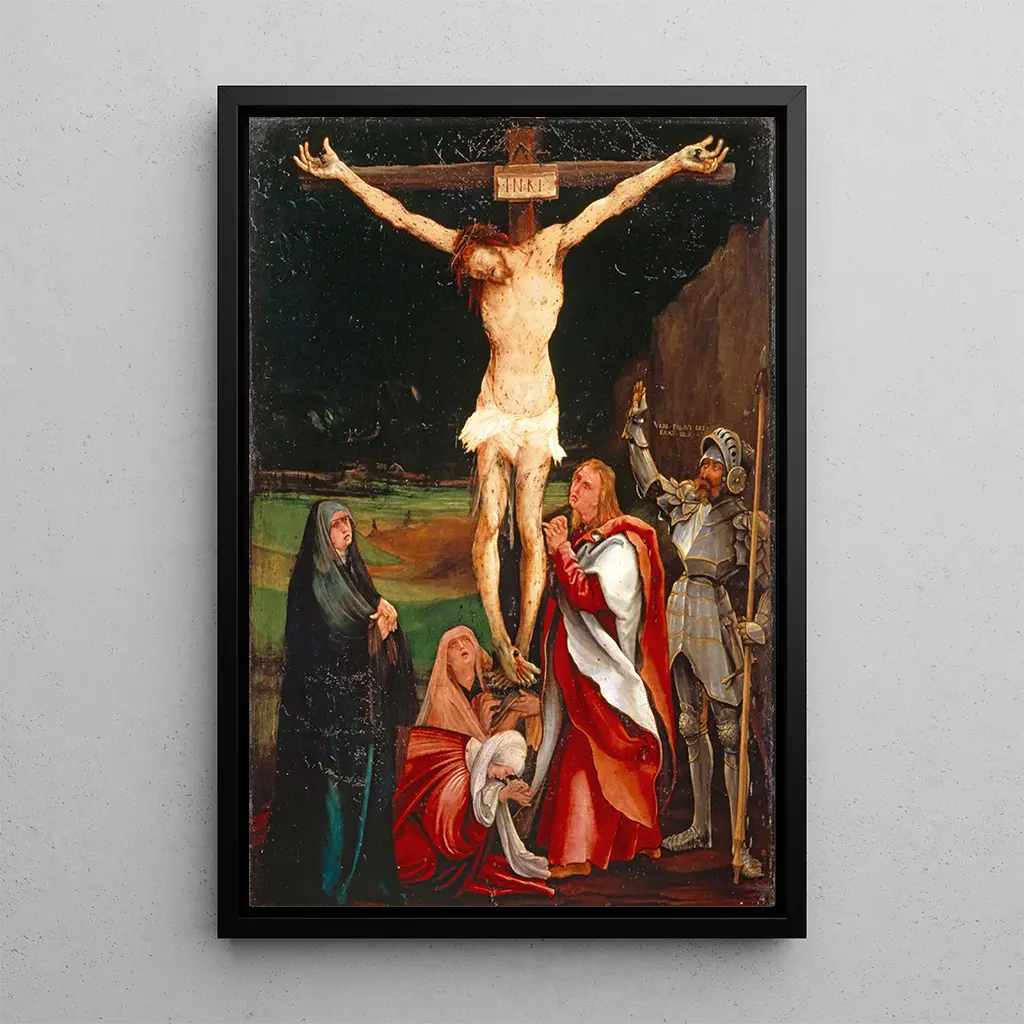 Matthias Grünewald, actief in het begin van de 16e eeuw, wordt beschouwd als een van de grote meesters van religieuze kunst in Duitsland. Zijn unieke stijl, vaak geassocieerd met expressionisme, onderscheidt zich door een emotionele intensiteit en een dramatische weergave van heilige onderwerpen. Geïnspireerd door mystiek en de spirituele bezorgdheden van zijn tijd, wist Grünewald het menselijke lijden en de goddelijke verlossing in zijn werken vast te leggen. "De Crucifixie" is ongetwijfeld een van zijn meesterwerken, waarin hij zijn vaardigheid toont om kunst en spiritualiteit te combineren en het hart van de toeschouwers door de eeuwen heen te raken.