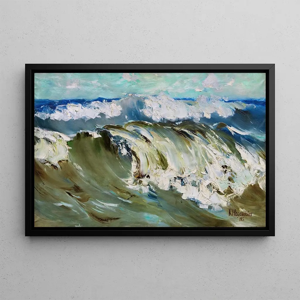 Karl Hagemeister, Duitse schilder uit de 19e eeuw, staat bekend om zijn maritieme landschappen en weergaven van de natuur. Geïnspireerd door de romantische beweging, wijdde hij zich aan het vastleggen van de wilde schoonheid van de kusten en zeeën. Zijn carrière bloeide in een periode waarin de kunst zich richtte op de viering van de natuur, als reactie op industriële ontwrichtingen. Hagemeisters werken, vaak doordrenkt met melancholie, getuigen van zijn liefde voor mariene elementen en zijn verlangen om de rauwe emotie over te brengen die deze landschappen oproepen. Zijn bijdrage aan de landschapskunst is onmiskenbaar en blijft vele hedendaagse kunstenaars inspireren.