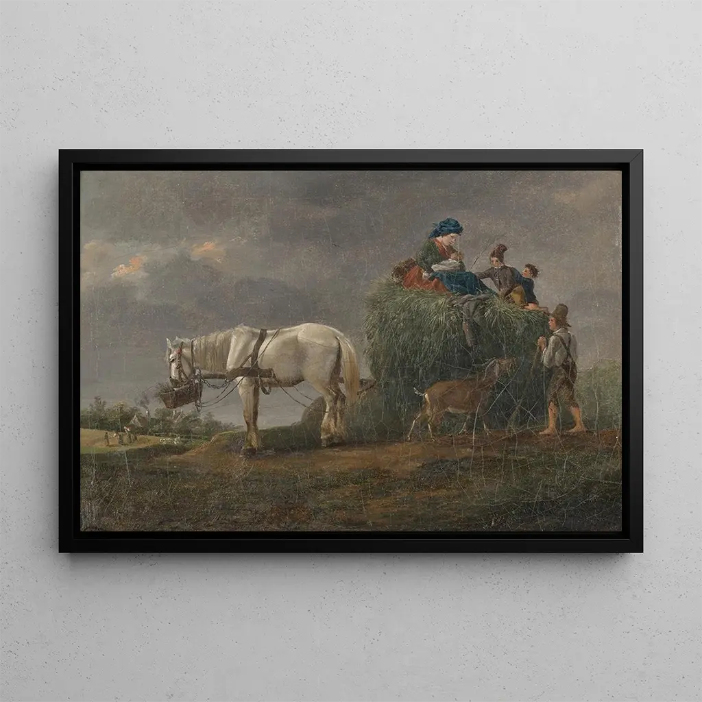 La charrette de foin : une reproduction d'art représentant la vie rurale « La charrette de foin » est une reproduction d'art qui capture l'essence même de la vie rurale au XIXe siècle. Cette œuvre dépeint une scène animée où des paysans s'affairent autour d'une charrette chargée de foin, sous un ciel lumineux. Les couleurs chaudes, allant des bruns terreux aux verts éclatants, évoquent la richesse des paysages agricoles. La technique de peinture, caractérisée par des détails minutieux et une lumière douce, crée une atmosphère vivante et dynamique, invitant le spectateur à s'immerger dans cette vie simple et authentique. Friedrich August Matthias Gauermann : un maître du réalisme Friedrich August Matthias Gauermann est un peintre autrichien du XIXe siècle, reconnu pour ses représentations réalistes de la vie rurale et des paysages. Influencé par le mouvement réaliste, il a su capturer la beauté du quotidien avec une précision remarquable. Ses œuvres témoignent d'une époque où l'art se concentrait sur la représentation fidèle de la nature et des scènes de la vie quotidienne. Gauermann a su allier technique et émotion, faisant de lui un artiste incontournable pour ceux qui apprécient l'authenticité et la profondeur des sujets traités. Une acquisition décorative aux multiples atouts La reproduction de « La charrette de foin » est un choix décoratif parfait pour apporter une touche de chaleur et de convivialité à votre intérieur. Que ce soit dans un salon, une salle à manger ou un bureau, cette toile saura créer une atmosphère accueillante et inspirante. Sa qualité d'impression garantit une fidélité aux détails et aux couleurs de l'œuvre originale, faisant de chaque regard un moment de connexion avec la nature et la vie rurale. Offrez-vous cette reproduction pour enrichir votre décoration et célébrer la beauté du monde agricole.