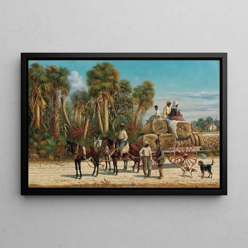 Le Chariot de Coton : une scène bucolique empreinte de douceur La reproduction de "Le Chariot de Coton" de William Aiken Walker nous plonge dans une ambiance rurale empreinte de sérénité. Ce tableau, avec ses teintes douces et ses détails minutieux, dépeint un moment de la vie quotidienne dans le sud des États-Unis, où un chariot chargé de coton est tiré par des chevaux. La lumière dorée du soleil couchant illumine la scène, créant des ombres délicates qui ajoutent à la profondeur de l'œuvre. Walker, avec son style réaliste, réussit à capturer non seulement l'élément visuel, mais aussi l'essence même de la vie agricole, invitant le spectateur à apprécier la beauté des paysages et des activités simples. William Aiken Walker : un peintre du Sud et de la nature William Aiken Walker, actif au XIXe siècle, est reconnu pour ses représentations de la vie rurale et des paysages du sud des États-Unis. Influencé par le mouvement réaliste, il a su mettre en avant les scènes de la vie quotidienne avec une sensibilité particulière. Ses œuvres, souvent centrées sur l'agriculture et les traditions du sud, témoignent d'une époque où la culture du coton était au cœur de l'économie locale. "Le Chariot de Coton" illustre parfaitement son engagement à immortaliser ces moments de l'histoire américaine, tout en célébrant la beauté des paysages naturels qui l'entourent. Une acquisition décorative aux multiples atouts Cette reproduction de "Le Chariot de Coton" est une pièce décorative qui saura enrichir votre intérieur, que ce soit dans un salon, un bureau ou une chambre. Sa qualité d'impression garantit une fidélité remarquable aux couleurs et aux détails de l'œuvre originale, apportant une touche de charme rustique à votre espace. Ce tableau évoque des souvenirs de la vie à la campagne et de la beauté des traditions, créant une atmosphère apaisante et inspirante. En intégrant cette toile à votre décoration, vous ajoutez non seulement une œuvre d'art, mais aussi un reflet de l'héritage culturel du sud des États-Unis.